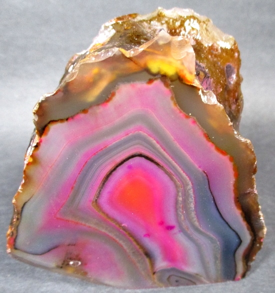 Agates mostly occur as nodules in volcanic rocks or waters containing silica in solution possibly derived from the decomposition of silicates in the lava.  The siliceous matter is deposited in regular layers resulting in the banded or striped formation.