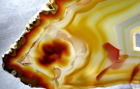 Agates mostly occur as nodules in volcanic rocks or waters containing silica in solution possibly derived from the decomposition of silicates in the lava.  The siliceous matter is deposited in regular layers resulting in the banded or striped formation.