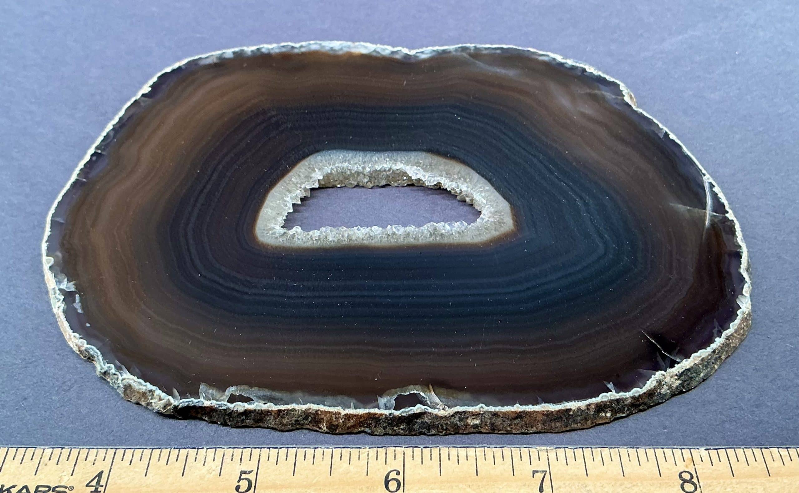 Agates mostly occur as nodules in volcanic rocks or waters containing silica in solution possibly derived from the decomposition of silicates in the lava.  The siliceous matter is deposited in regular layers resulting in the banded or striped formation.