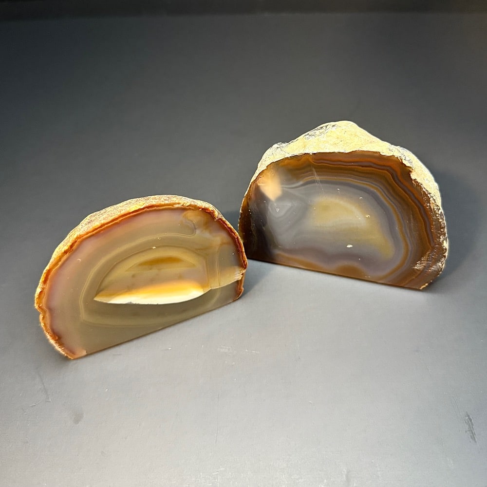 AGB410: Brazilian Agate – End- Set of 2. – Location: Brazil Selection: Polished and rough.