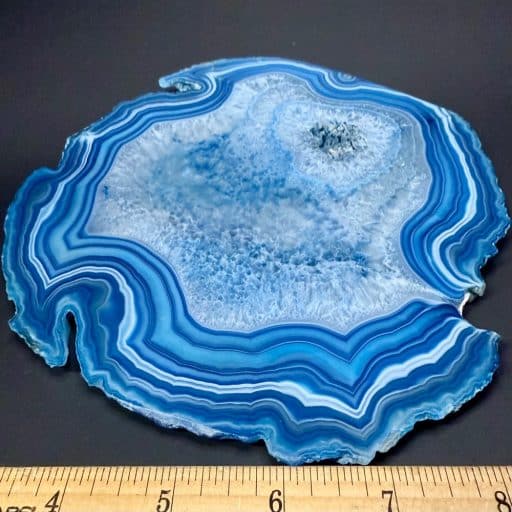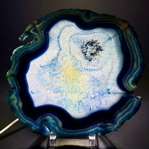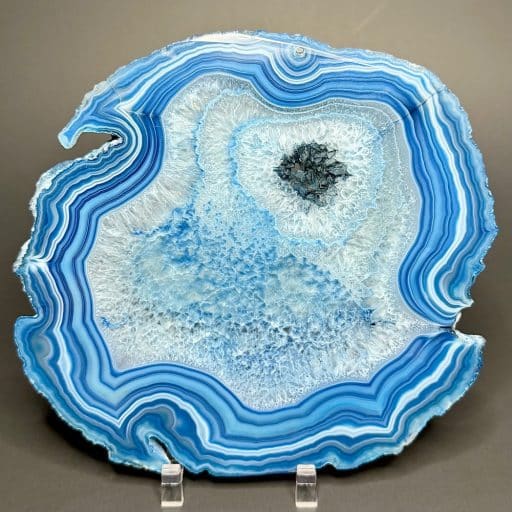 Agates mostly occur as nodules in volcanic rocks or waters containing silica in solution possibly derived from the decomposition of silicates in the lava. The siliceous matter is deposited in regular layers resulting in the banded or striped formation.