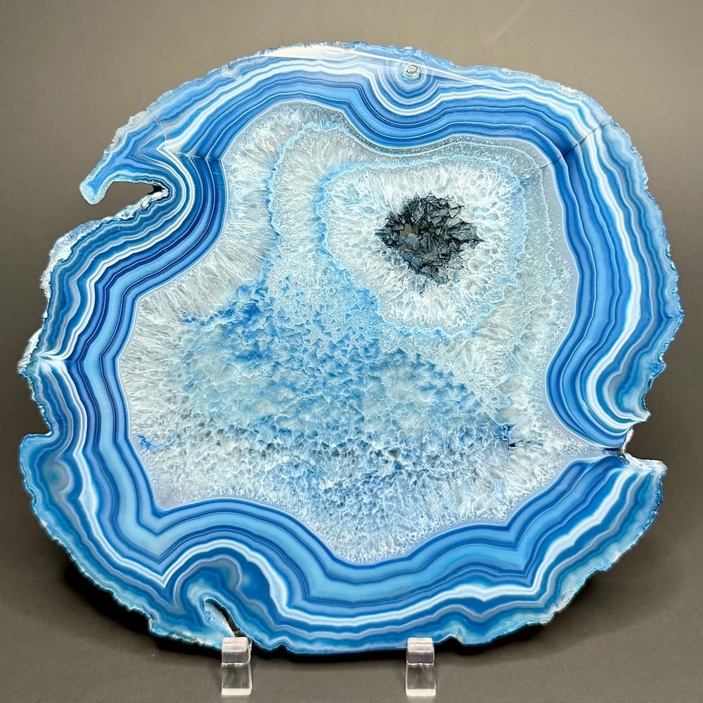 Brazilian Agate is a semi-precious gemstone found in Brazil. It is a variety of chalcedony, a mineral in the quartz family, and is known for its distinctive, multicolored banding patterns that can range from white to various shades of brown, red, blue, green, and yellow. These gemstones originate from the southern region of Brazil, specifically around Rio Grande do Sul, and their formation is linked to volcanic activity from the late Permian age.