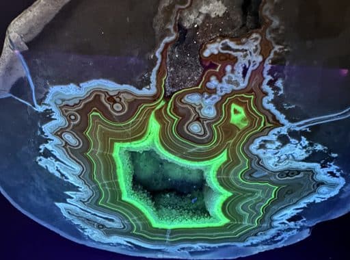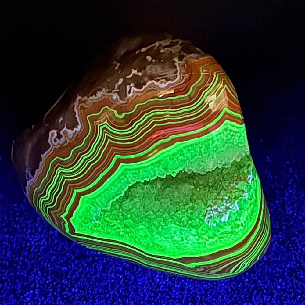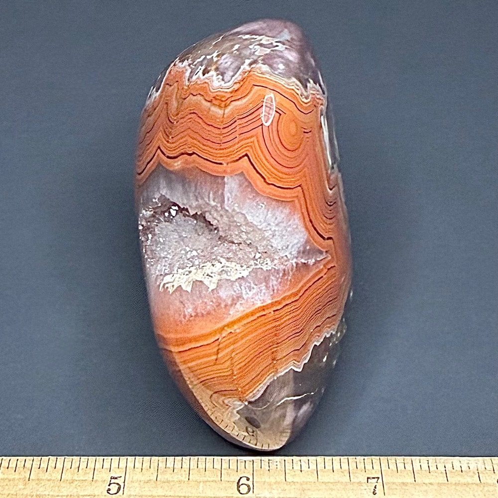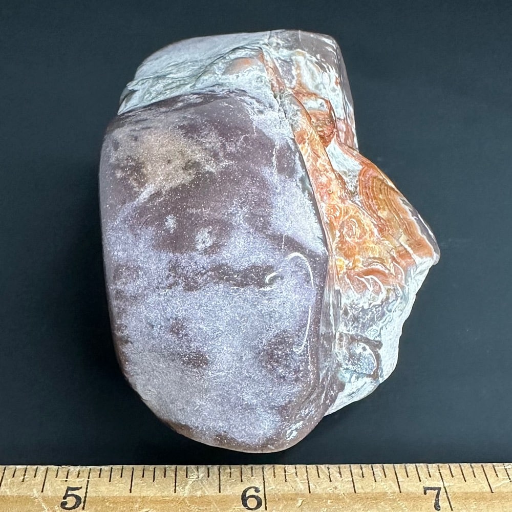 Dry Head Agates are from the Bighorn Canyon area of Montana. The banding colors are usually bright orange with some white or pink bands on charcoal, light gray, whitish oranges or greenish matrix. Dry Head Agates are very rare and no longer available as the mining area is now part of a wild horse refuge. Dry Head Agates may be geologically similar to the Teepee Canyon and Fairburn Agates of the Black Hills area.