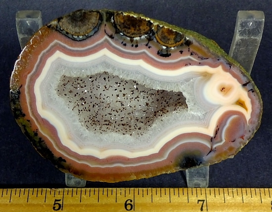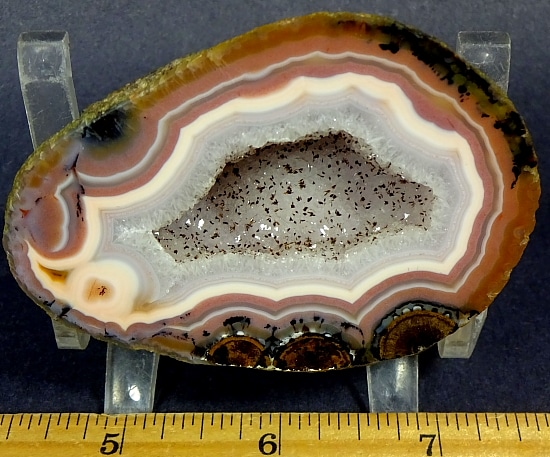 Agates mostly occur as nodules in volcanic rocks or waters containing Silica in solution which is possibly derived from the decomposition of Silicates in the lava. The Siliceous matter is deposited in regular layers resulting in the banded or striped formation. It is very unlikely that you would ever find an exact duplicate of any type of Agate, Fairburn or other.