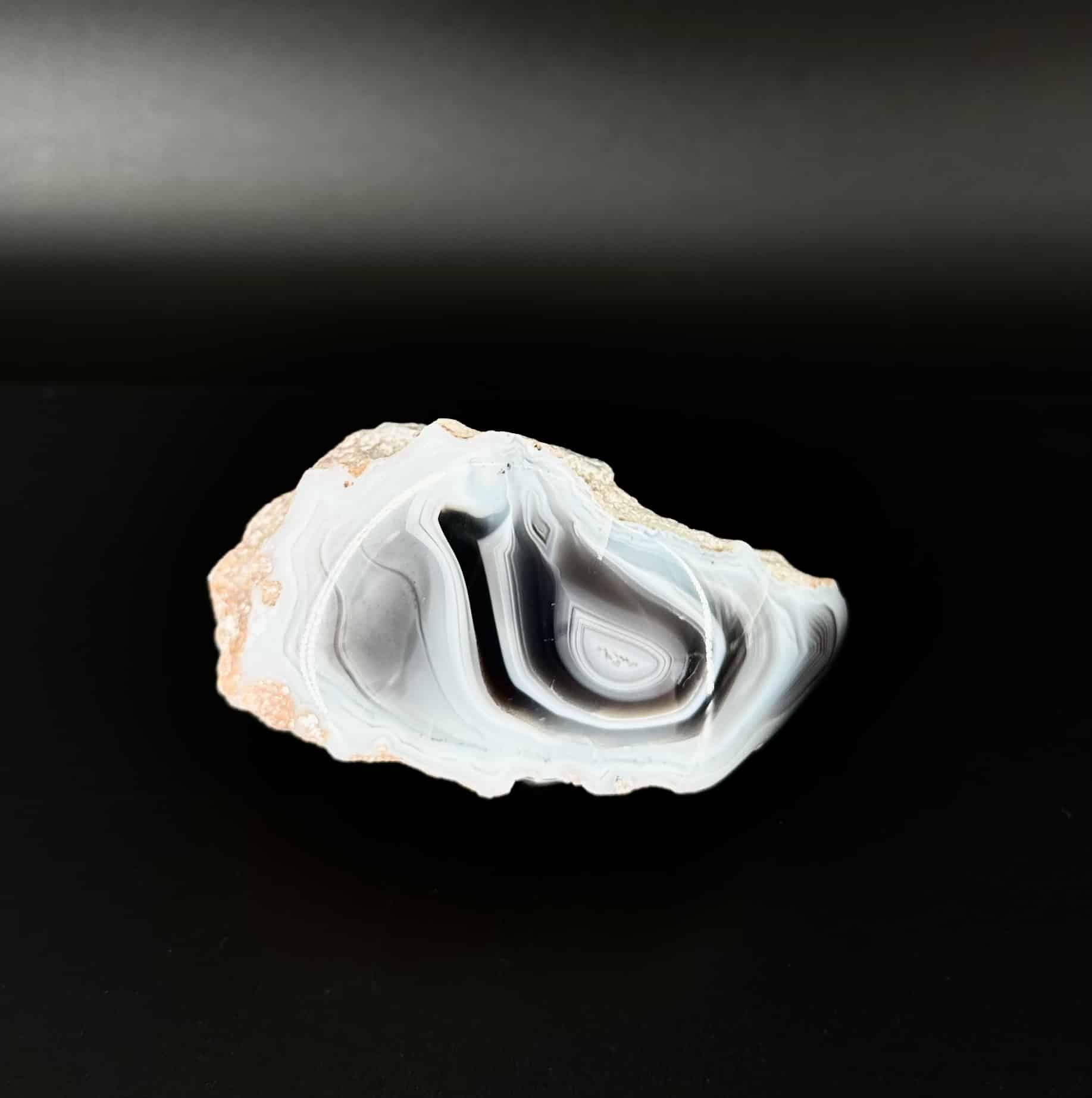 Botswana Agate is a variety of banded Chalcedony, a mineral of the Quartz family. It is characterized by its unique and striking banding patterns, which range in colors from earthy browns, grays, and creams to vibrant pinks, purples, and blues. The gemstone is named after the African country of Botswana, where it is primarily found. Botswana Agate is considered far superior to all other agates due to the near perfect banding it shows, as well as the limited supply. It is also known as the “Sunset Stone” because it preserves sunlight and soothes people throughout long evenings.
