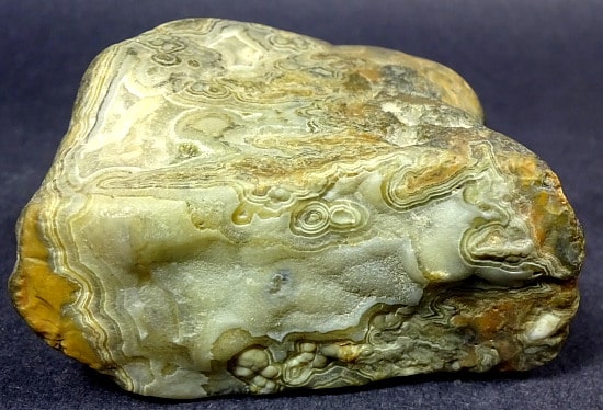 Mexican Agates are found as both smoother nodules and in a botryoidal form. This latter form is comprised of small, intersecting spheres. These generally give you a good idea of where the orbicular portions of the stone are, making the rough easier to identify and work with.