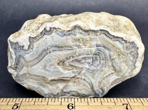 Appearance: Handpicked and polished at the Rock Shed. Has a fabulous “shadow” effect when rotated in bright light.  This agate had been lightly tumbled but we re-cut the face and it has been highly polished.  The “shadow” affect is one of the best we’ve seen.