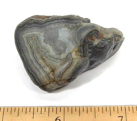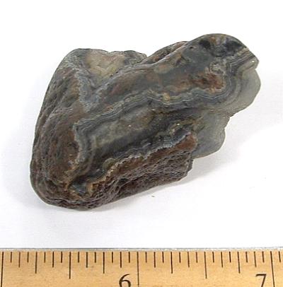 Fairburn formation takes place in sedimentary limestone, where calcite inside the limestone is replaced by silicon-dioxide or silicic acid over time in a high-pressure, micropourous environment. In this theory, bands of agate form from the inside of the agate outwards.
