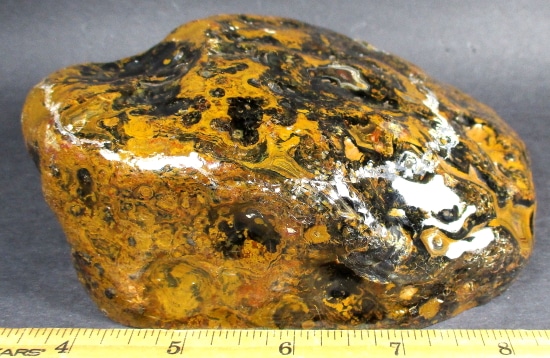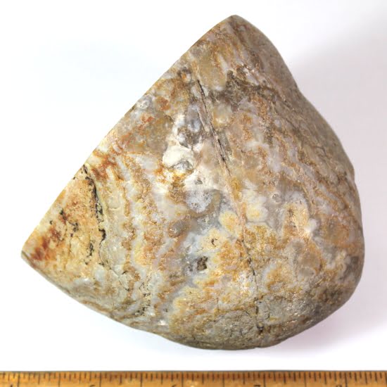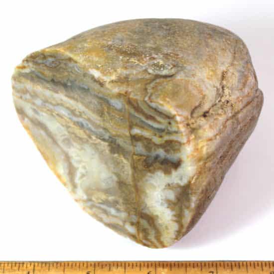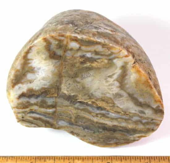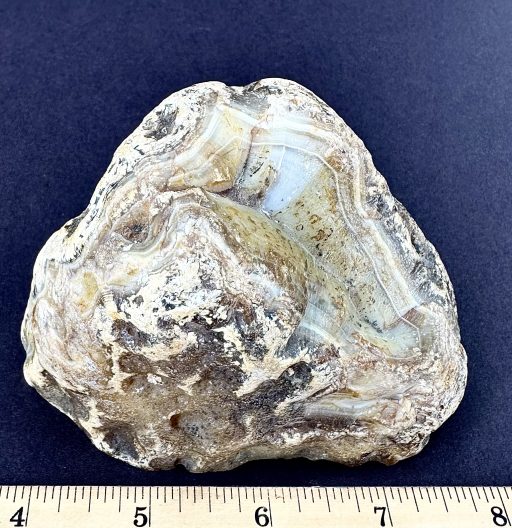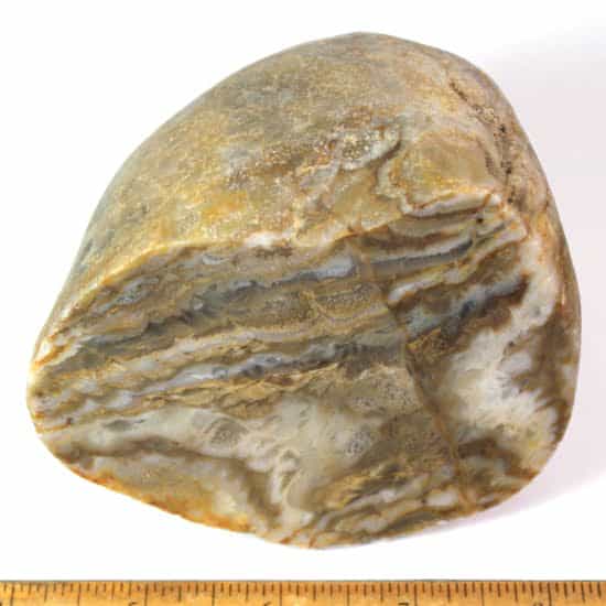 Zyamara Mad River Agate is a type of agate that is found in Madagascar. It is a banded form of microcrystalline quartz that displays translucence and, in some cases, banding. It can also contain sagenite crystals, which are needle-like formations of rutile. Mad River Agate is known for its amazing color patterns and unique beauty.