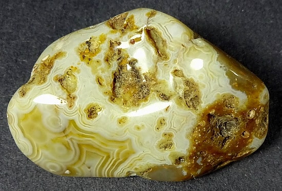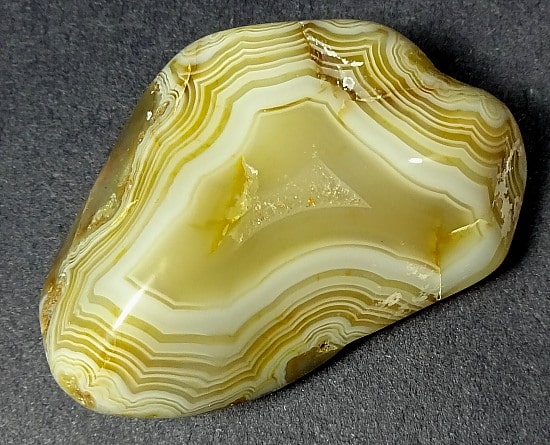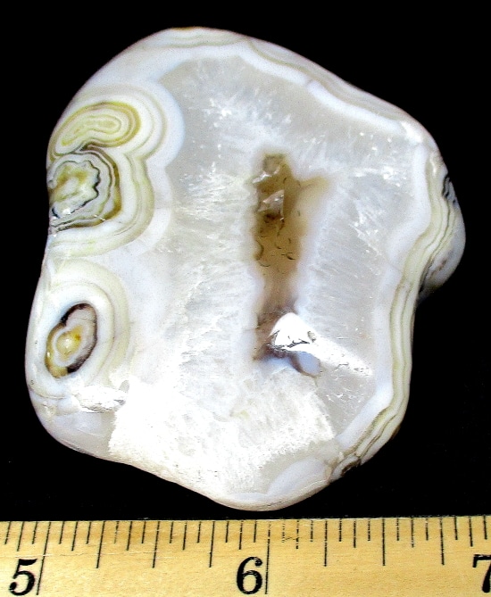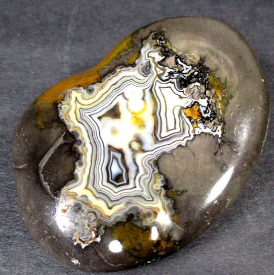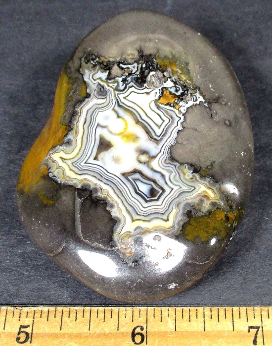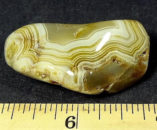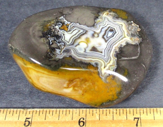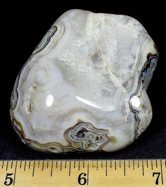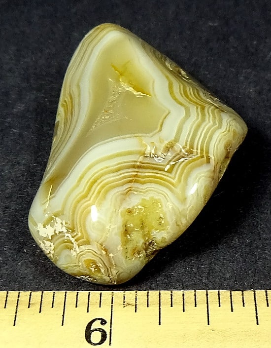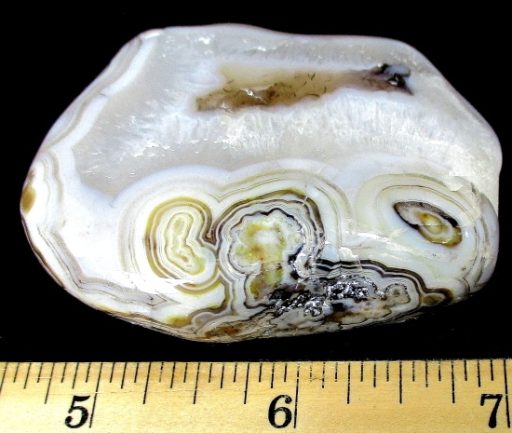 This is a gorgeous Fairburn Agate from South Dakota.  The Fairburn Agate is found in many colors and variations of banding.  It measures 2 3/8″ x 2″ x 7/8″ thick with a nice polish. A great find!