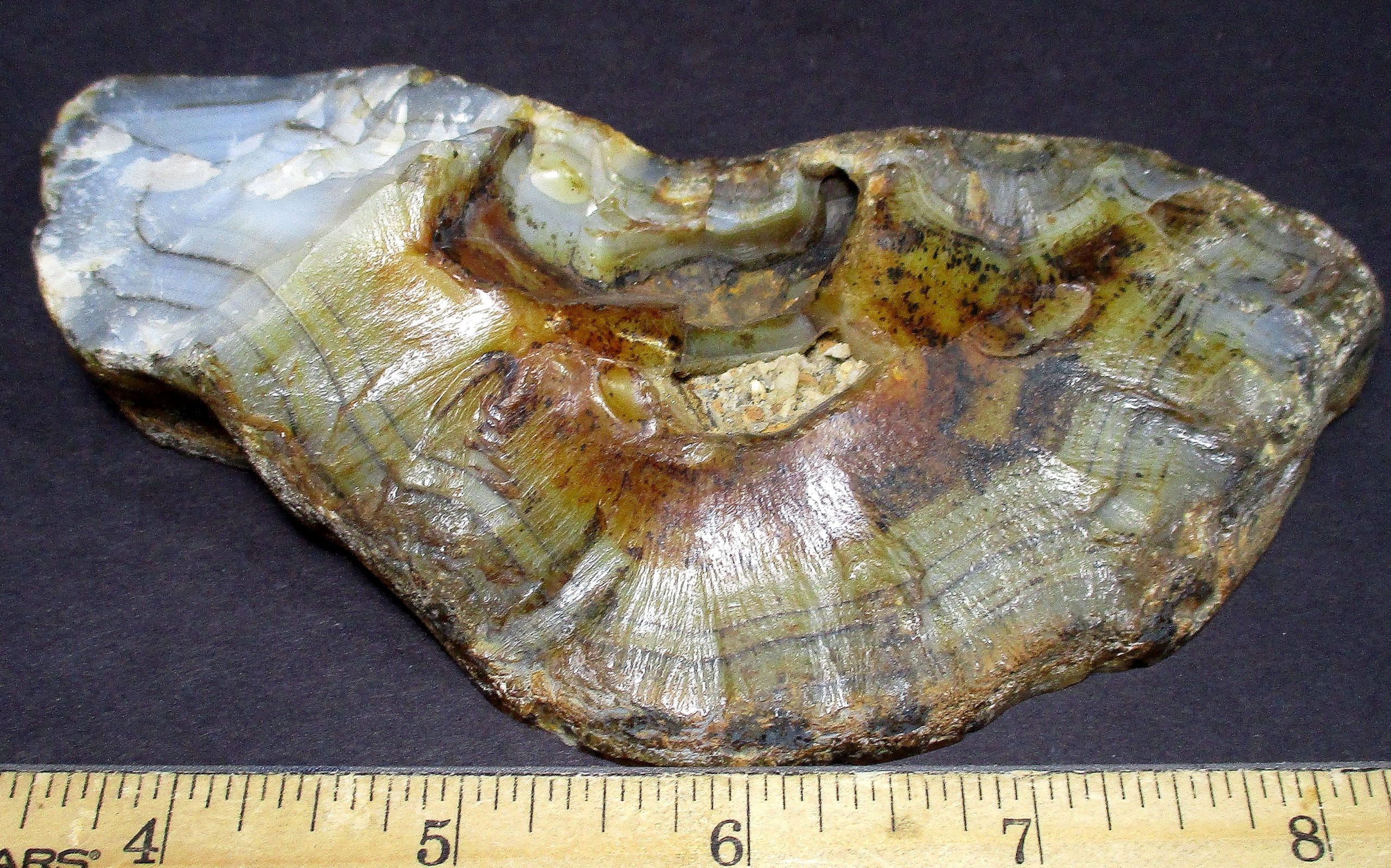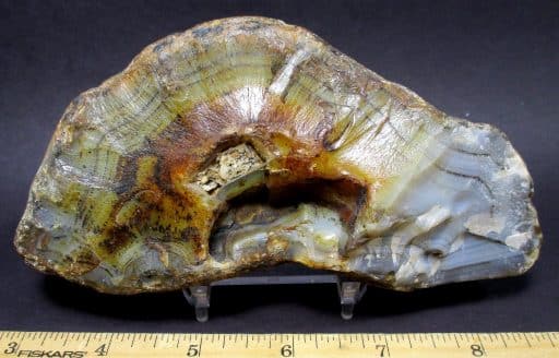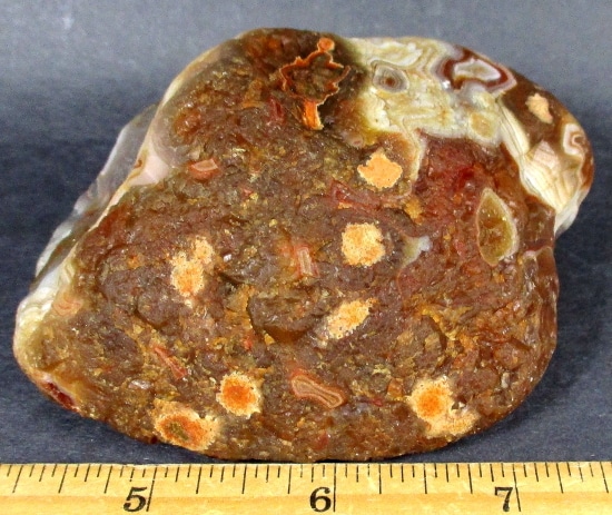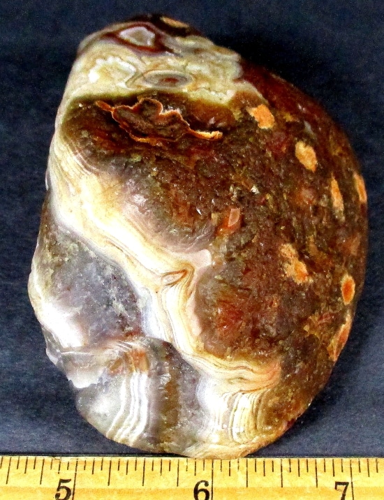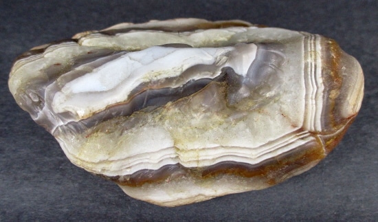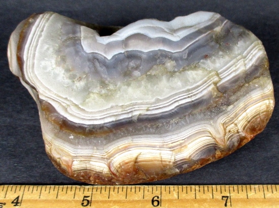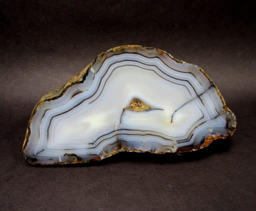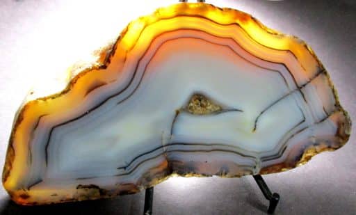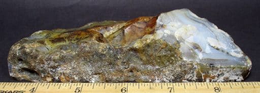 Zyamara Mad River Agate is a type of agate that is found in Madagascar. It is a banded form of microcrystalline quartz that displays translucence and, in some cases, banding. It can also contain sagenite crystals, which are needle-like formations of rutile. Mad River Agate is known for its amazing color patterns and unique beauty.