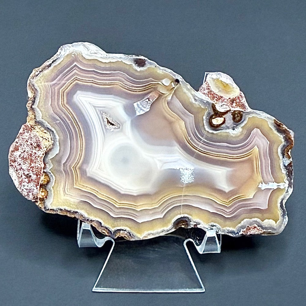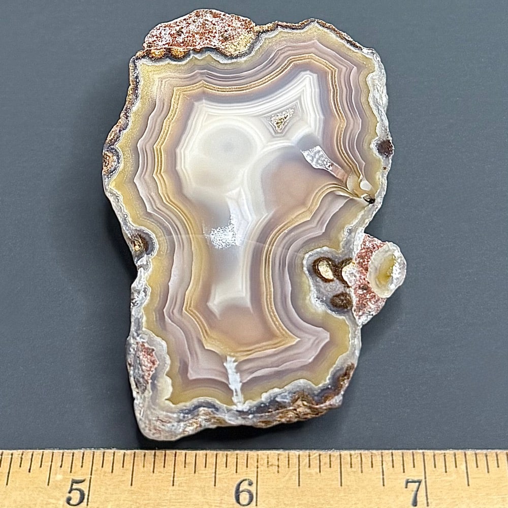 Laguna Agate is one of the most highly praised banded agates in the world. It is known for its extremely tight banding and vibrant shades of red and scarlet. Laguna Agate is a variety of banded Chalcedony, a mineral of the Quartz family. Though predominantly scarlet, its layers may contain shades of deep red, milky white, yellow, gold and brown.