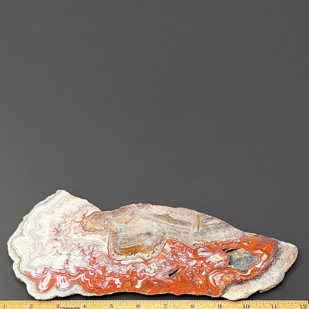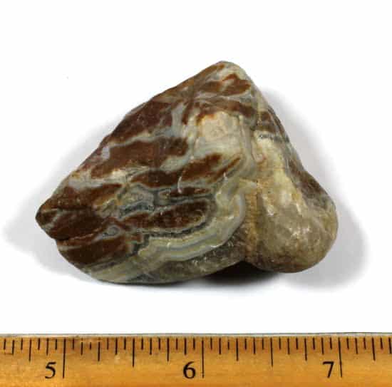 Among the best-known varieties of banded chalcedony is the stone often known as Mexican Crazy Lace Agate. The hardness of the material makes it a joy to cut, while the intricate patterns have made it a favorite since the 1950s. This unique agate forms into many different patterns in many colors, but the stones generally have a common “theme.”