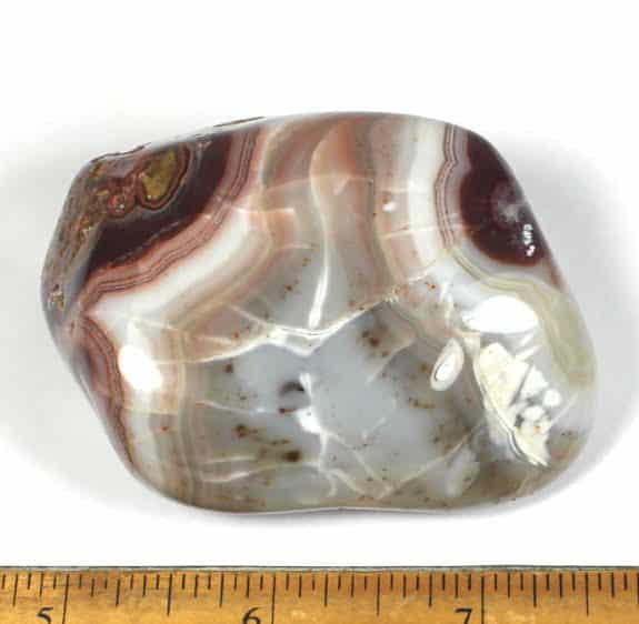 Specifically, you’ll find that these stones are largely fortification agates. This loose category of agates generally means that the banding in the stones will have sharp angles. Scattered among these layers of colored silica are orbicular patterns, consisting of concentric circles of color. This gives the stone the “lace” name, as it loosely resembles the intricate patterns of lace fabric.