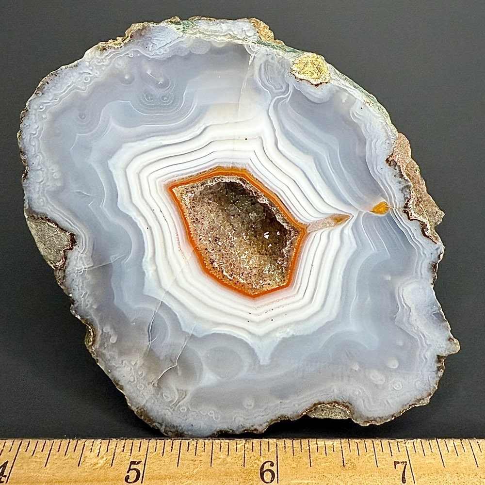 Both nodule and vein/seam Moroccan agates come from the Atlas Mountain region in Kerrouchen, Morocco. The agate nodules are known for their intense red, pink, white, yellow, orange and brown agate hues.