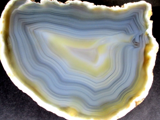 Agates mostly occur as nodules in volcanic rocks or waters containing Silica in solution which is possibly derived from the decomposition of Silicates in the lava. The Siliceous matter is deposited in regular layers resulting in the banded or striped formation. It is very unlikely that you would ever find an exact duplicate of any type of Agate.