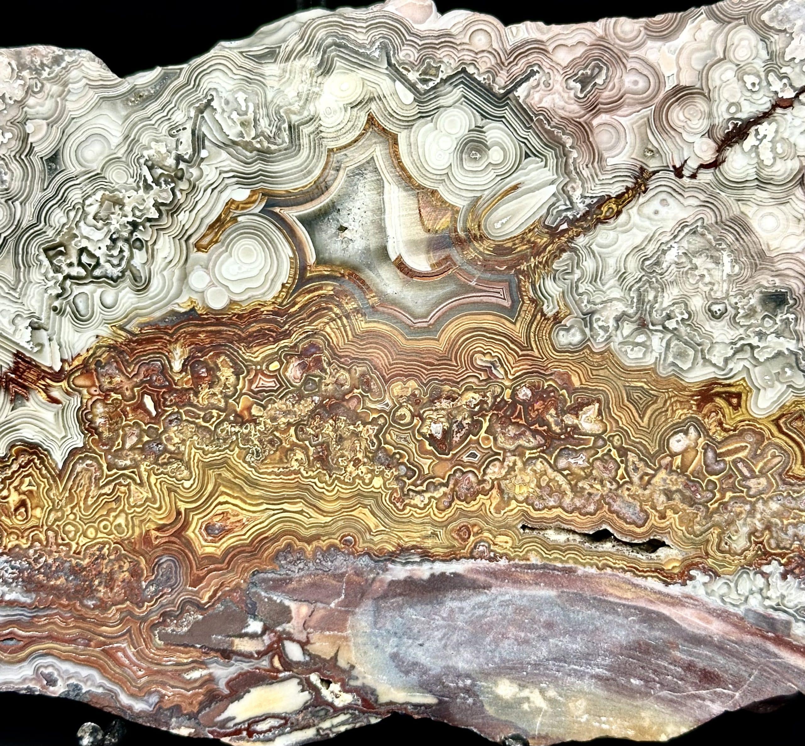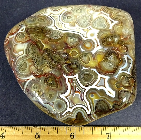 Agates mostly occur as nodules in volcanic rocks or waters containing Silica in solution which is possibly derived from the decomposition of Silicates in the lava. The Siliceous matter is deposited in regular layers resulting in the banded or striped formation. It is very unlikely that you would ever find an exact duplicate of any type of Agate, Fairburn or other.