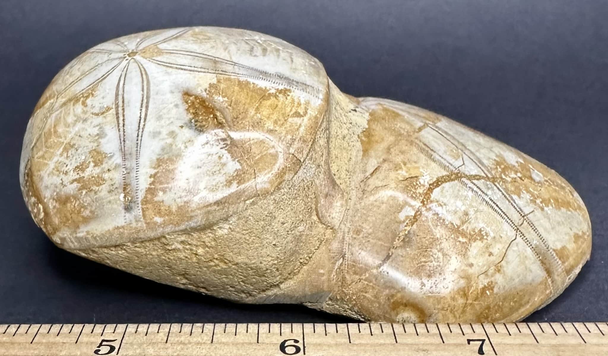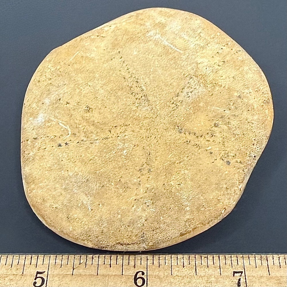 FO109: Fossilized Sand Dollar. – Locality: Madagascar Selection: Rough and polished specimen.
