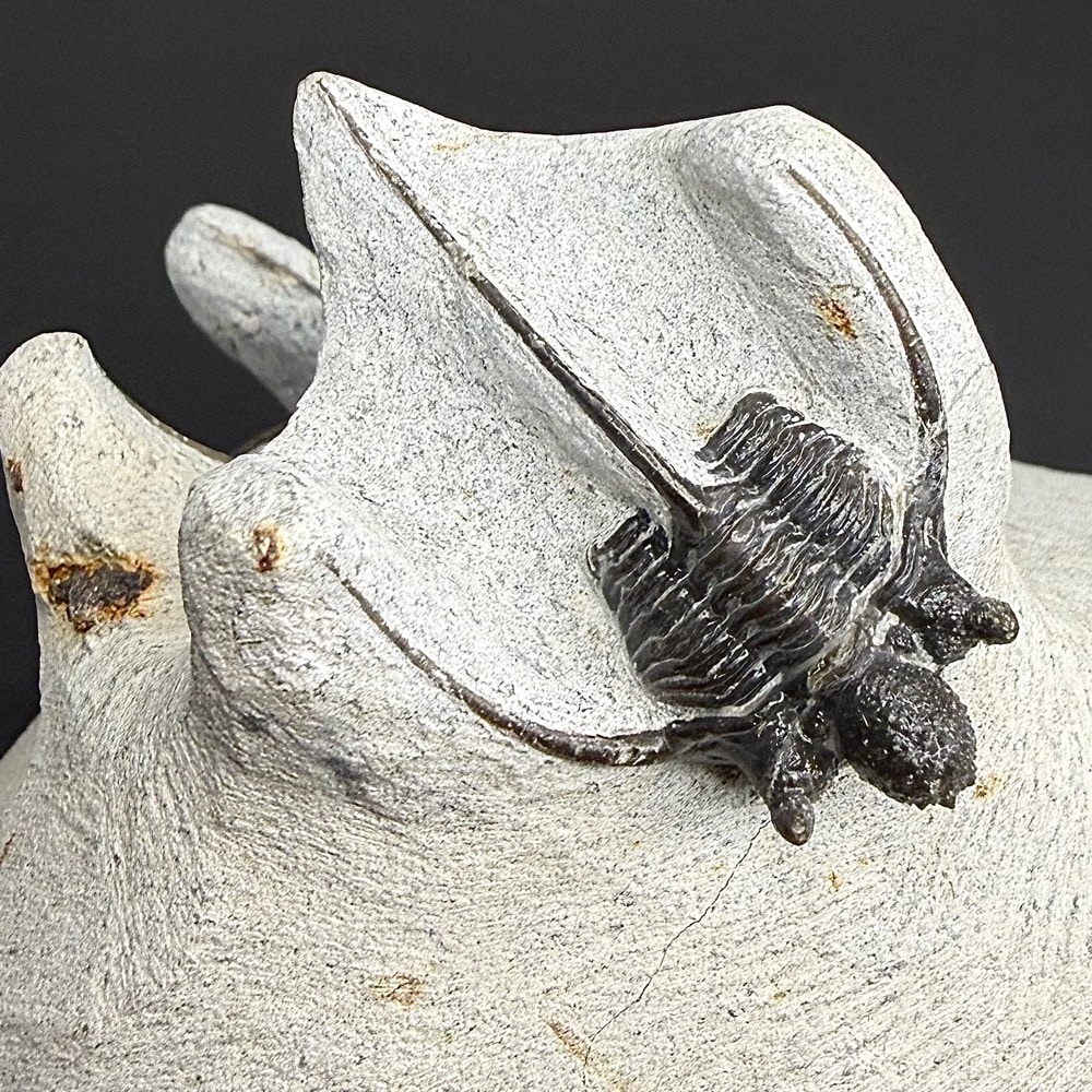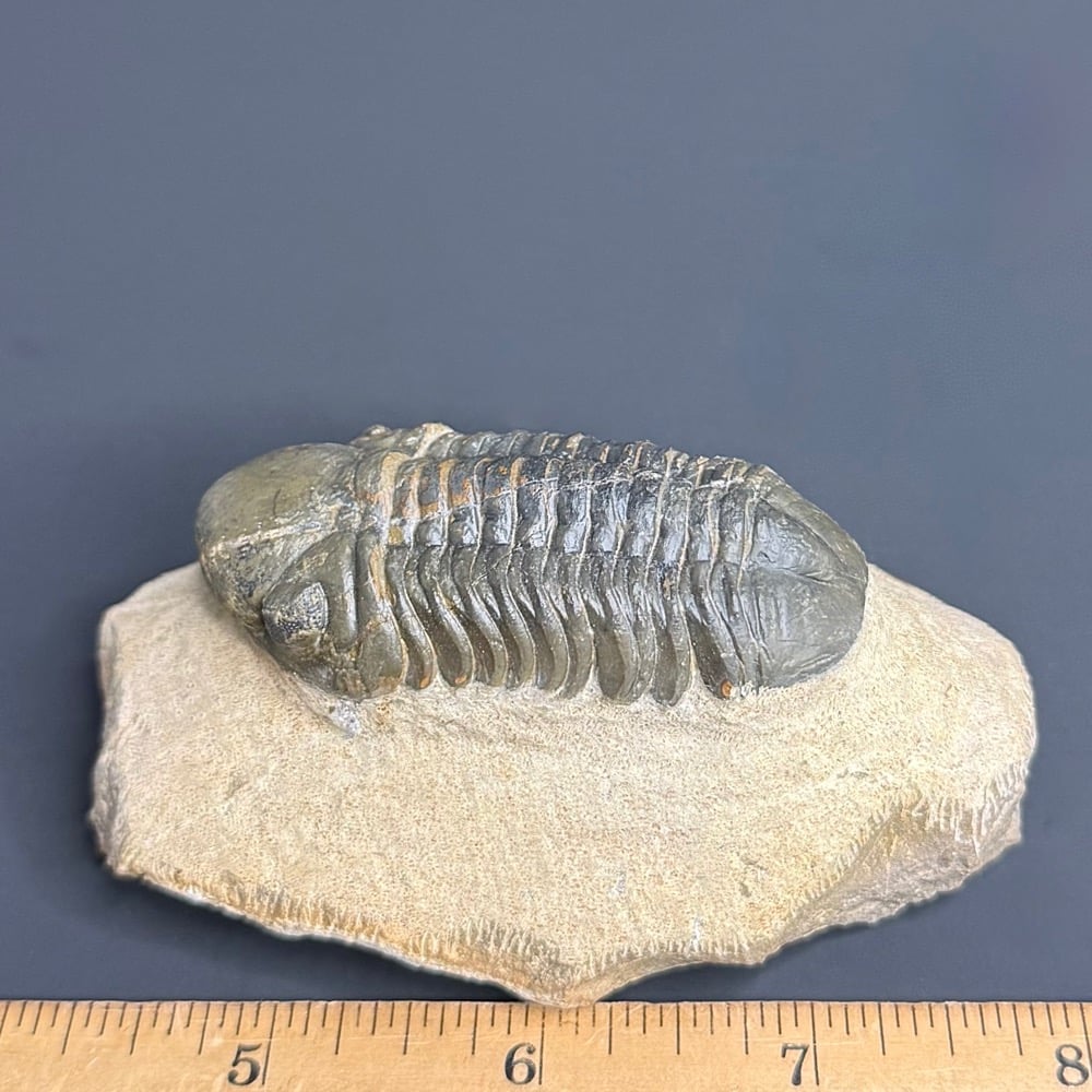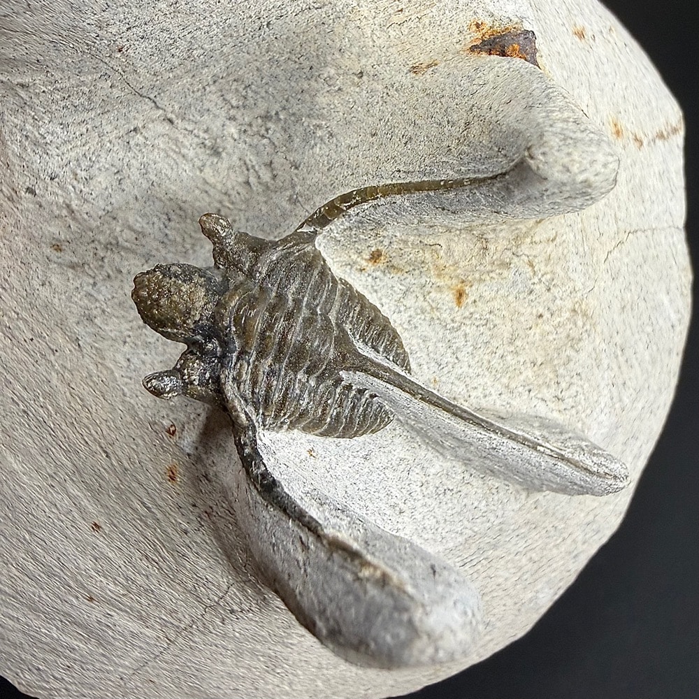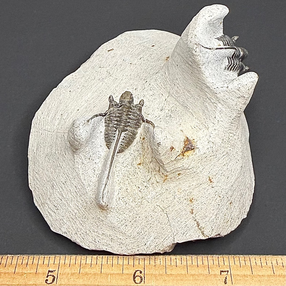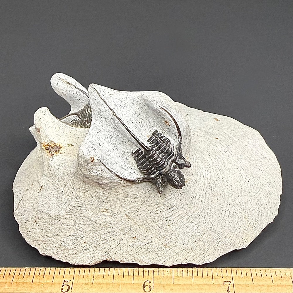Trilobites are hard-shelled, segmented members of Arthropoda and the class Trilobita that existed throughout almost all of the Paleozoic era, flourishing in the earlier part of it and slowly declining in the later part. The most common trilobites were about 2-7 cm (1-3.5 in) in length, but over their long history they ranged in size from 1 mm-72 cm (.04 in-28 in) and exhibited so much variation that they are classified into nine (or possibly ten) orders with more than 15,000 species. The smallest species are presumed to have been part of the free floating plankton, while the more common, mid-sized species probably walked along the sea floor filtering mud to obtain food, and the larger varieties may have been swimming predators.