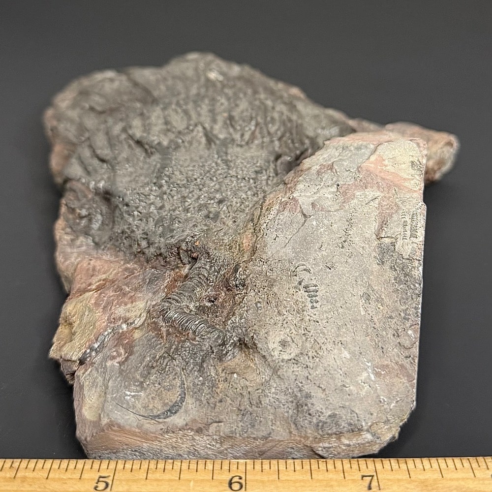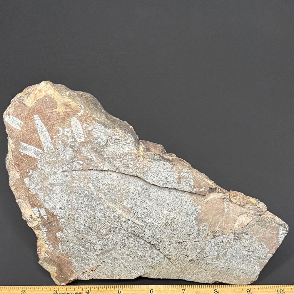 Crinoids are a fascinating species, and this fossil is equally as fascinating. Crinoids are echinoderms and are a filter feeding, plant like marine animal and first appeared on the earth’s surface over 500 million years ago in the Cambrian Era. Stemmed crinoids flourished in the Paleozoic seas with their remains abundant in Paleozoic rock sequences.  Today a close relative of the Crinoid still survives at the bottom of the ocean and is usually referred to as a “sea lily.”