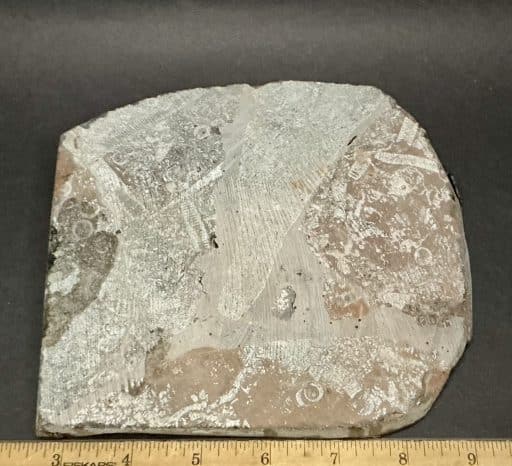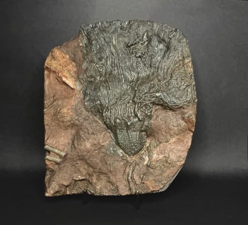 Crinoids are a fascinating species, and this fossil is equally as fascinating. Crinoids are echinoderms and are a filter feeding, plant like marine animal and first appeared on the earth’s surface over 500 million years ago in the Cambrian Era. Stemmed crinoids flourished in the Paleozoic seas with their remains abundant in Paleozoic rock sequences. Today a close relative of the Crinoid still survives at the bottom of the ocean and is usually referred to as a “sea lily.”