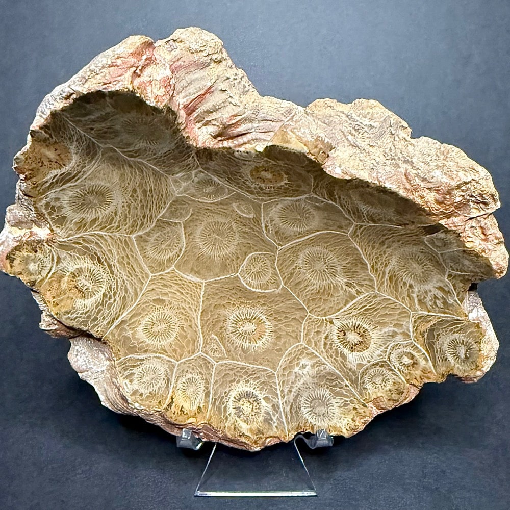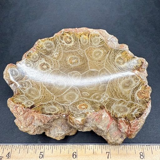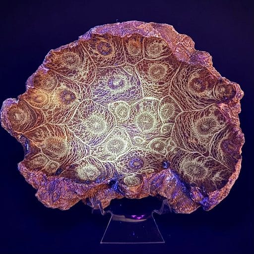 Coral is built by secreting calcium carbonate skeletons. Hard coral is fossilized over millions of years. It can be almost any color. The stony Corals are often found in Coral reefs, large structures generally found in tropical waters. Reefs are extremely diverse consisting of over 4,000 species of fish, cnidarians, mollusks, crustaceans, and other animals.