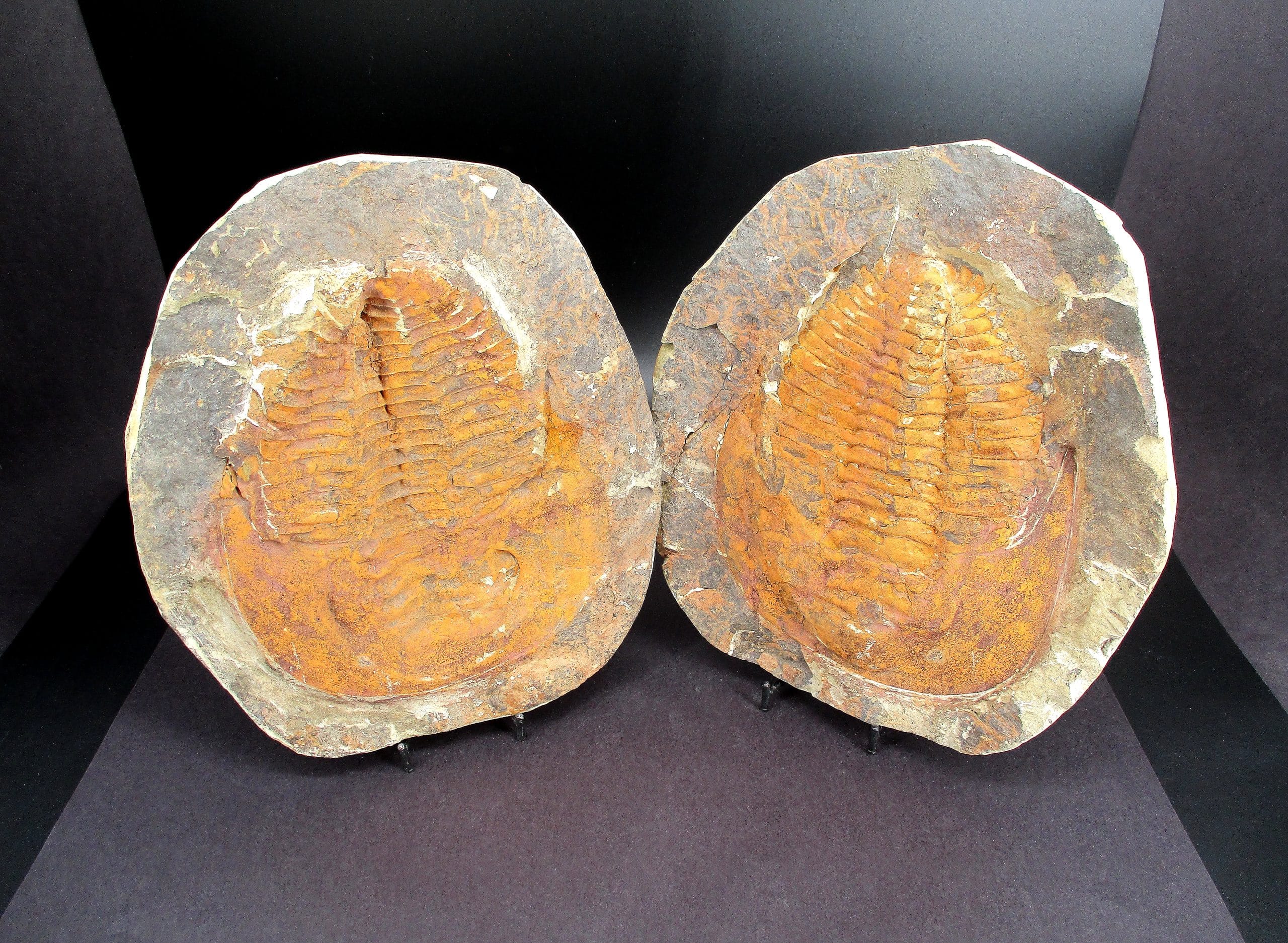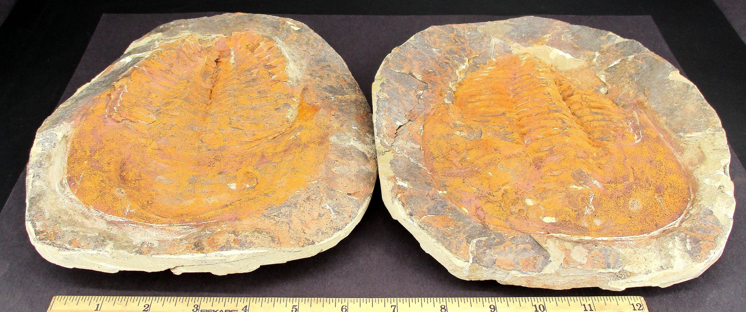 Trilobites are hard-shelled, segmented members of Arthropoda and the class Trilobita that existed throughout almost all of the Paleozoic era, flourishing in the earlier part of it and slowly declining in the later part. The most common trilobites were about 2-7 cm (1-3.5 in) in length, but over their long history they ranged in size from 1 mm-72 cm (.04 in-28 in) and exhibited so much variation that they are classified into nine (or possibly ten) orders with more than 15,000 species. The smallest species are presumed to have been part of the free-floating plankton, while the more common, mid-sized species probably walked along the sea floor filtering mud to obtain food, and the larger varieties may have been swimming predators.