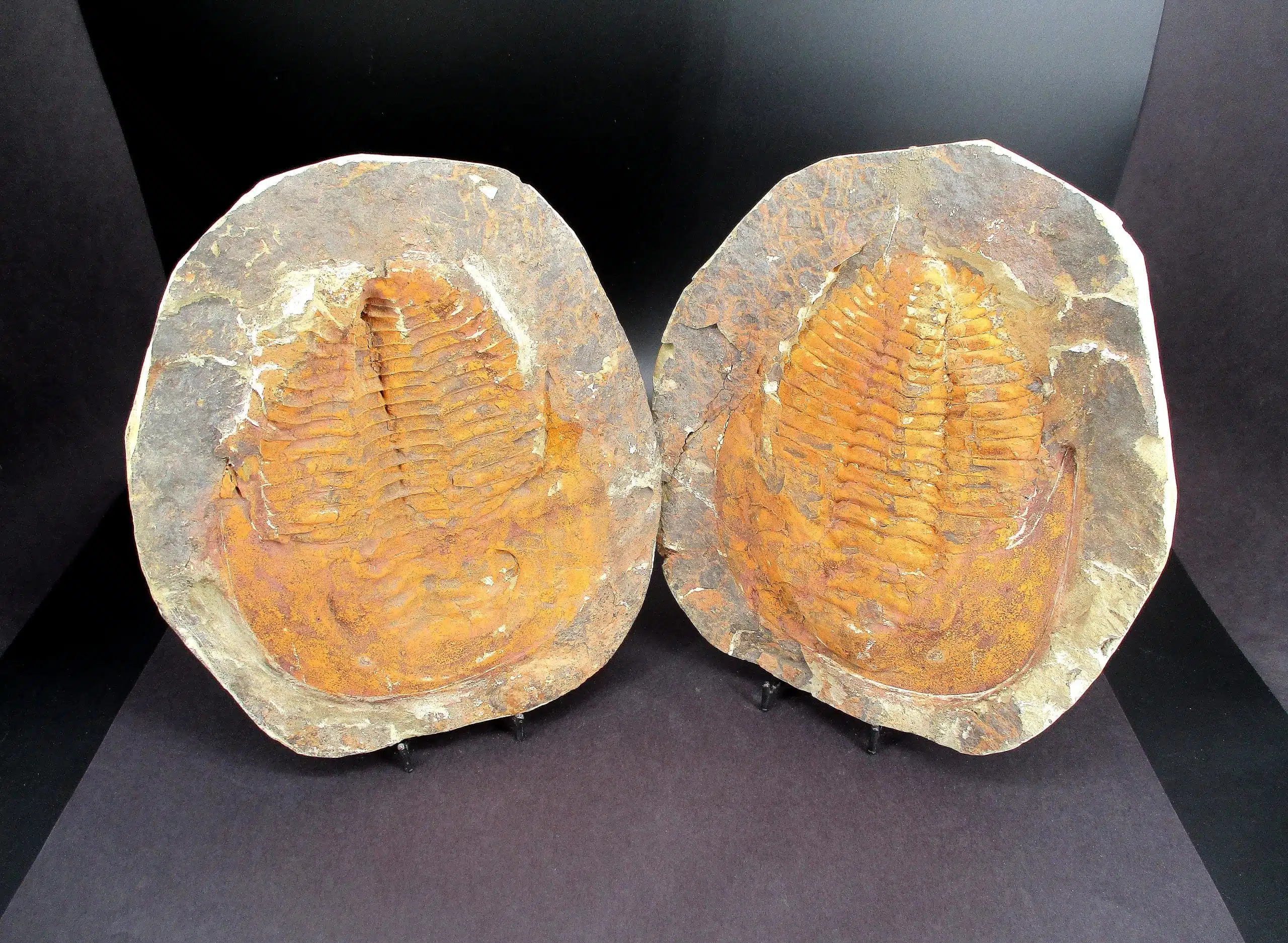 This is a fossilized Trilobite in matrix from Morocco.  It measures 8 1/4″ x 9 1/4″ x 2 3/8″.  This very interesting fossil actually shows great detail of the trilobite throughout with the imprint on the opposite side. A very cool and rare fossil for you to enjoy