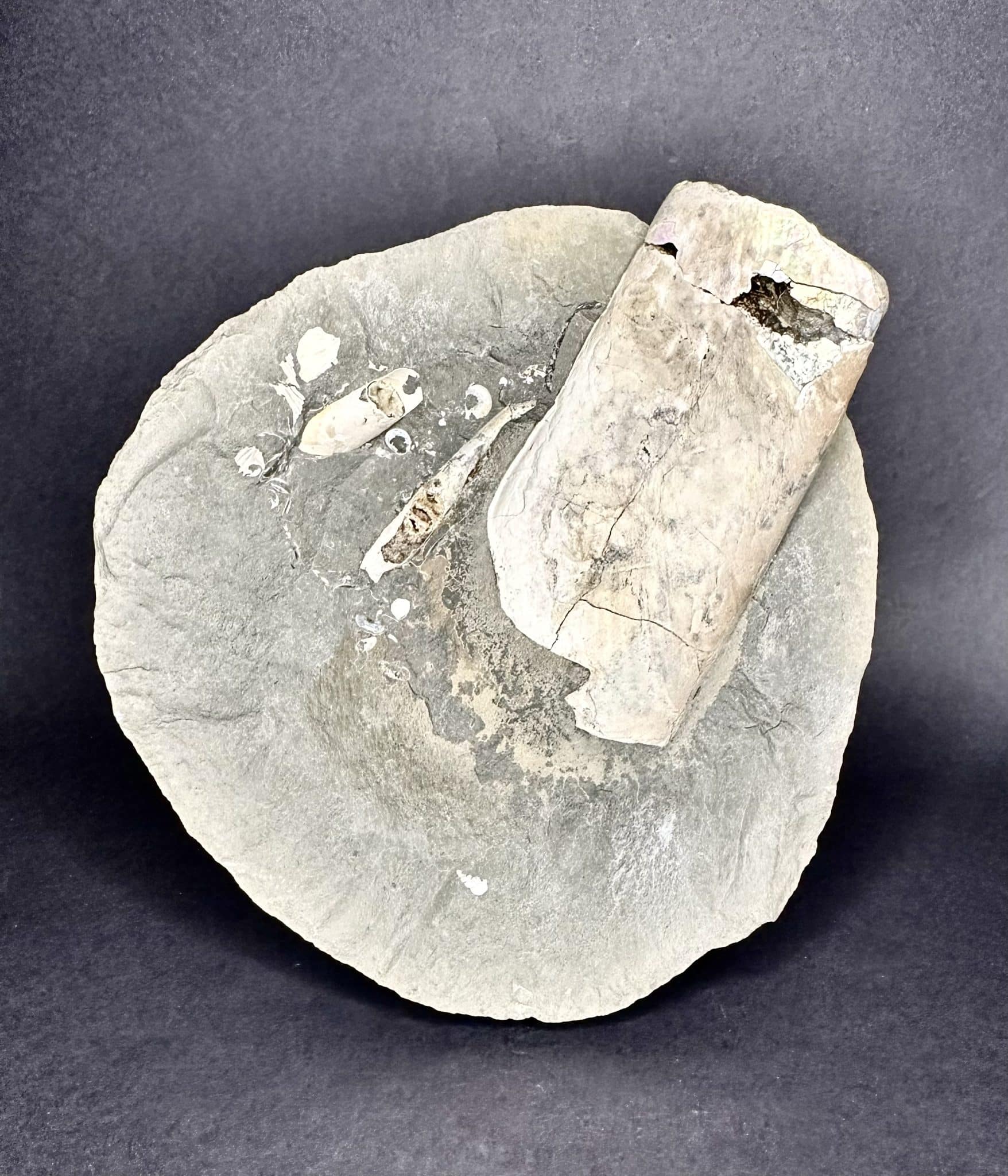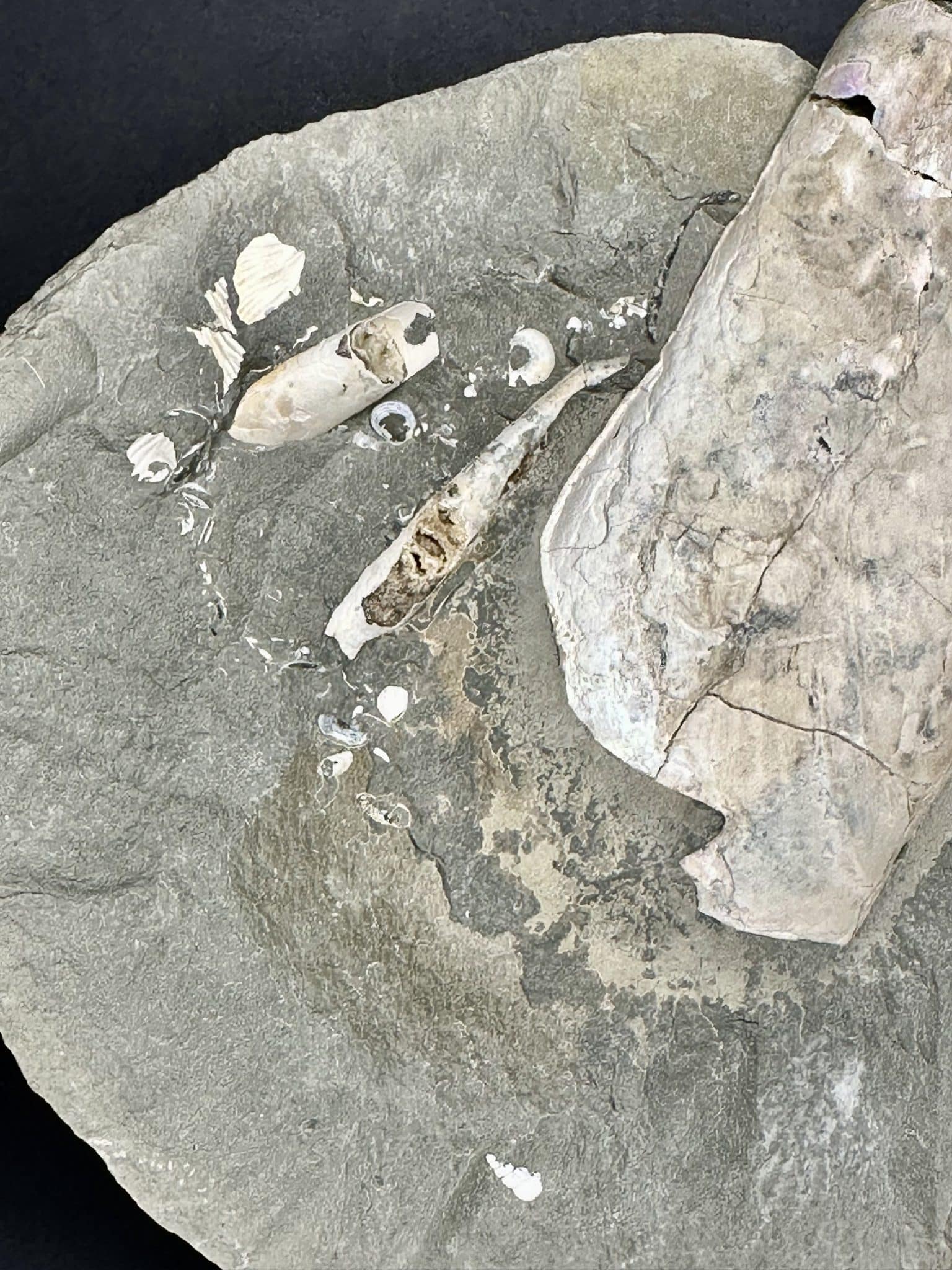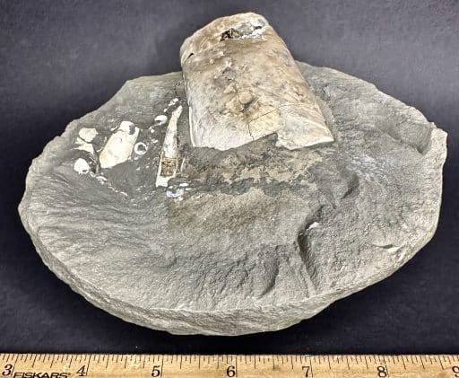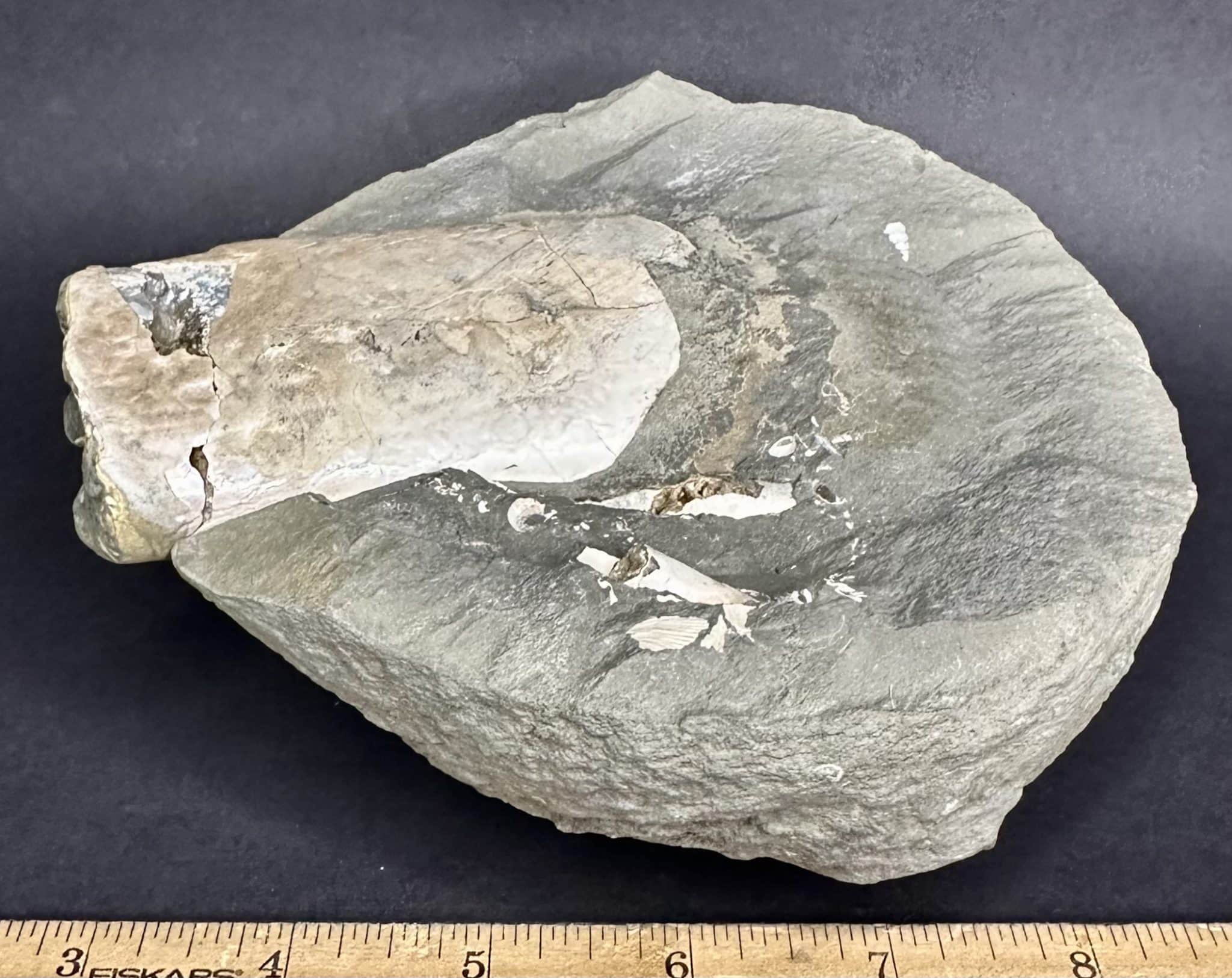 This fossil is a member of the Species Baculites compressus which is from the Cretaceous Period some 60 million years ago. It is from the Upper Pierre Shale Formation of Meade County in South Dakota.