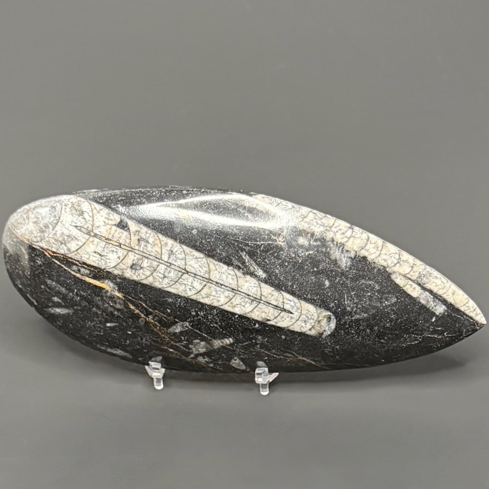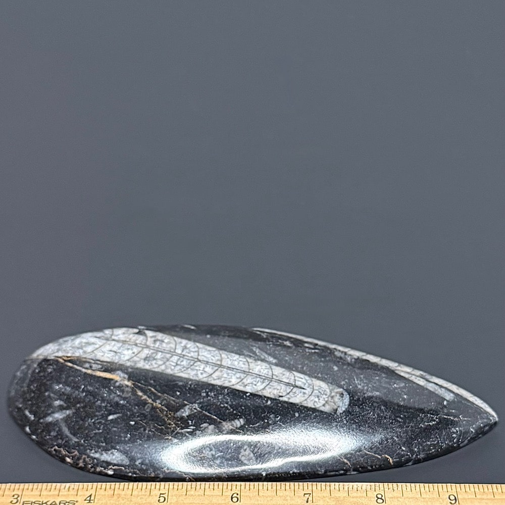 Appearance:  It has a good polish which reveals well preserved Orthoceras fossils.