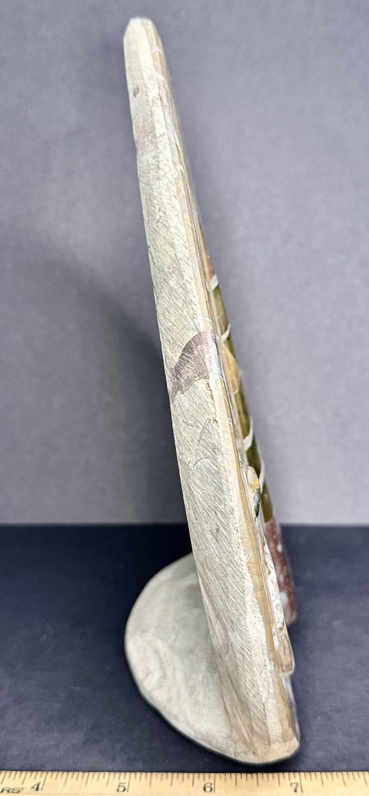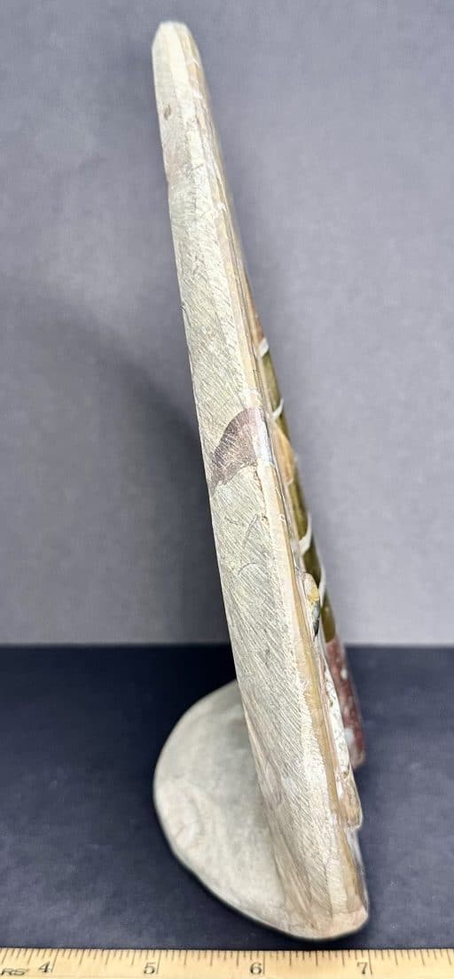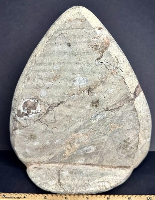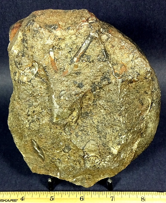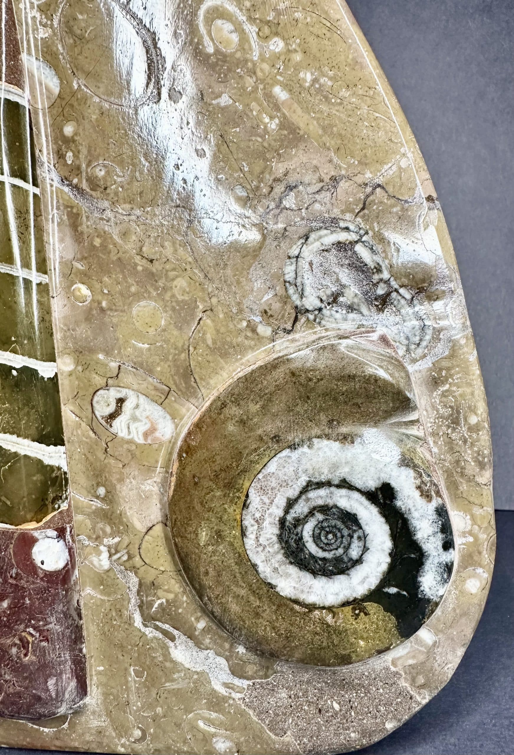 These Moroccan fossils are among the oldest cephalopods. They were abundant during the Paleozoic era some 350 MM years ago and now make up the Atlas Mountain range of central Morocco. There were two Nautiloid forms present in the Moroccan Devonian Sea. The Goniatites is an extinct relative of the Ammonites, it possessed an external shell, which is has a spiral form with internal chambers. The Orthoceras was straight shelled cephalopod with the internal chambers. They were related to the modern-day chambered nautilus and the squid.