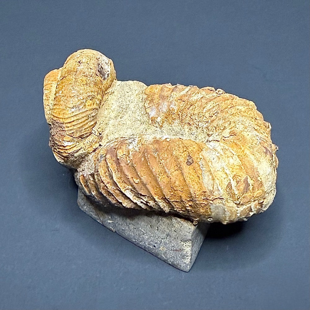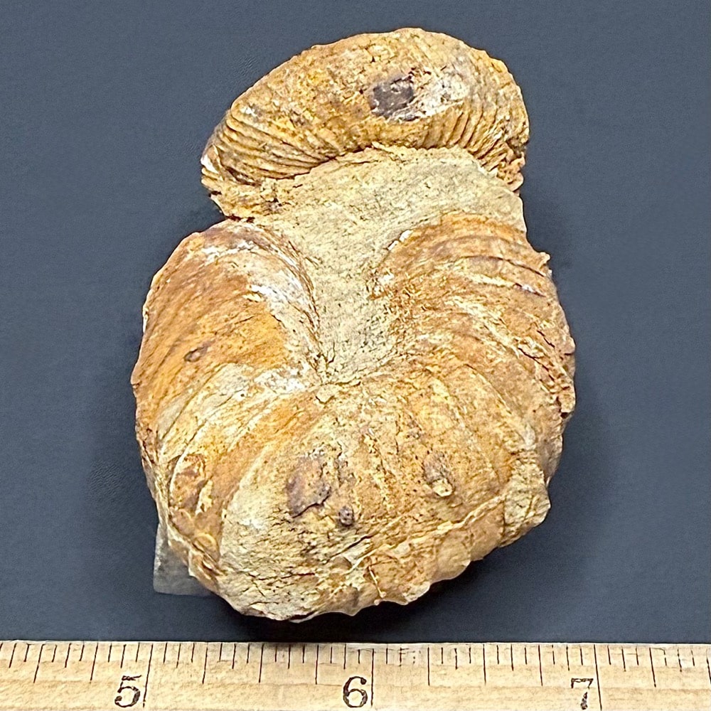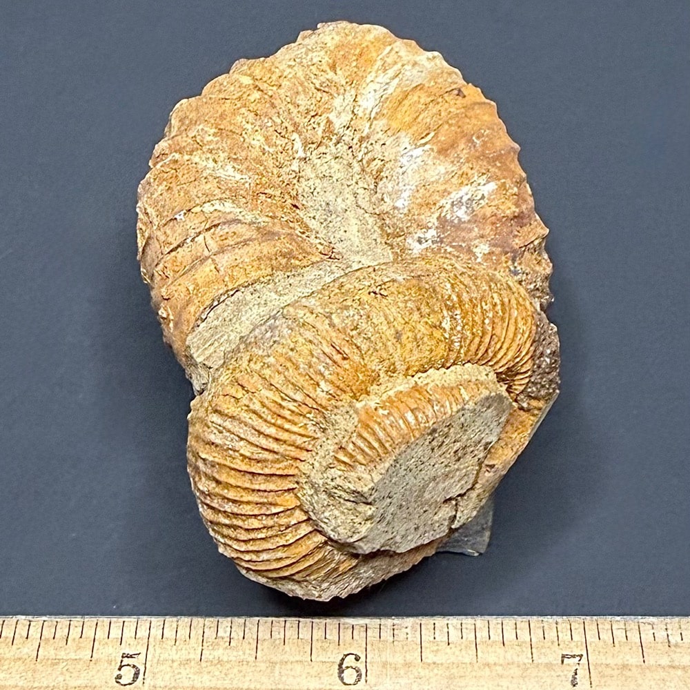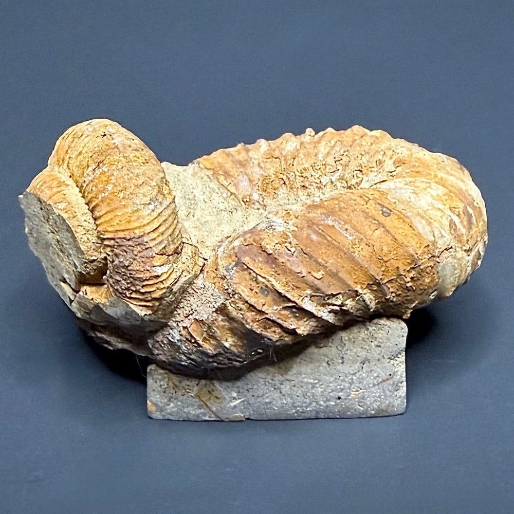 Ammonites are extinct members of the cephalopod group of mollusks. Only a limited number of species have survived to the present day which includes the squid and the chambered nautilus. Ammonites had a multi-chambered shell, and added more chambers as it grew, always living in the outer chamber. They lived in the Cretaceous period some 63 to 130 million years ago.