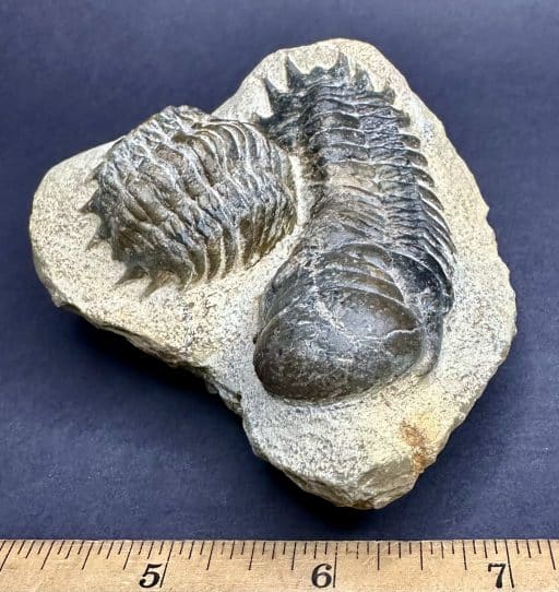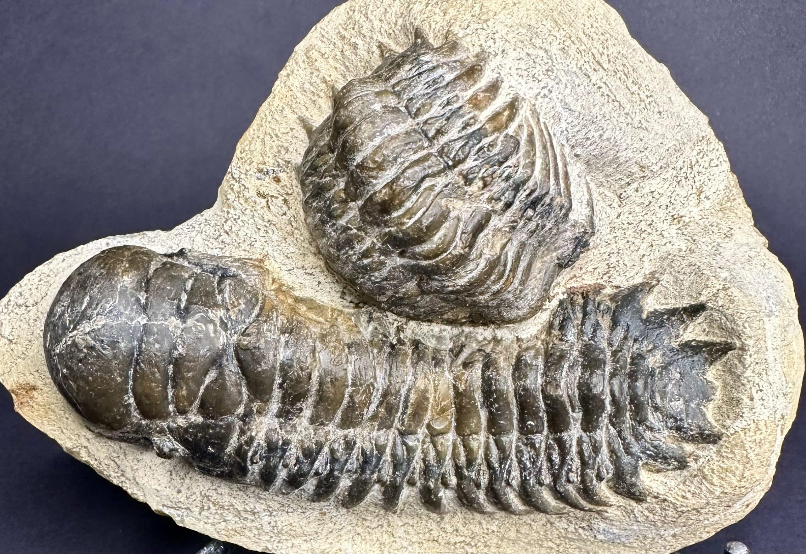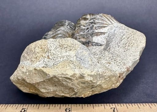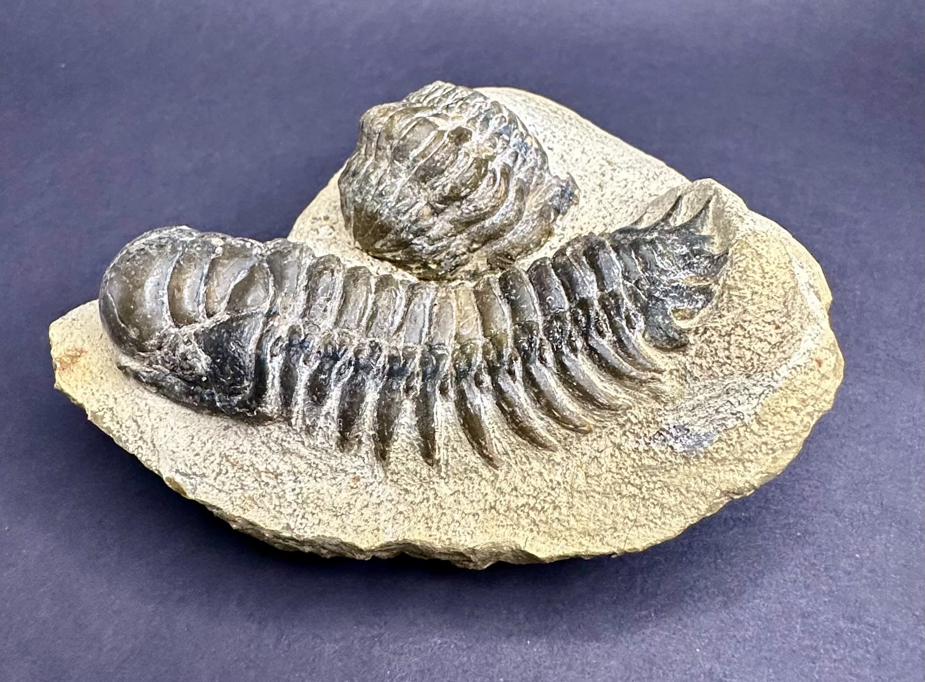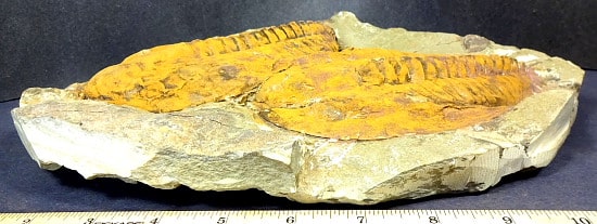 Trilobites are hard-shelled, segmented members of Arthropoda and the class Trilobita that existed throughout almost all of the Paleozoic era, flourishing in the earlier part of it and slowly declining in the later part. The most common trilobites were about 2-7 cm (1-3.5 in) in length, but over their long history they ranged in size from 1 mm-72 cm (.04 in-28 in) and exhibited so much variation that they are classified into nine (or possibly ten) orders with more than 15,000 species. The smallest species are presumed to have been part of the free-floating plankton, while the more common, mid-sized species probably walked along the sea floor filtering mud to obtain food, and the larger varieties may have been swimming predators.