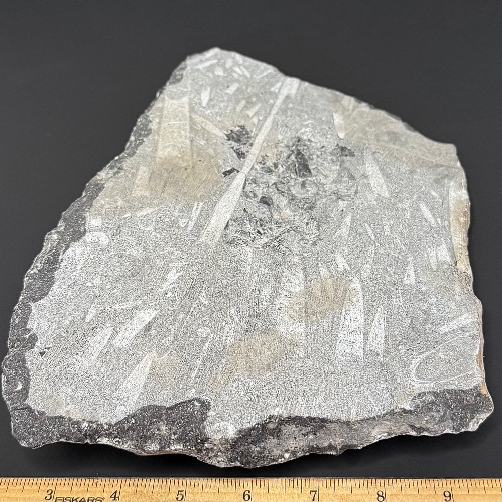 Appearance:  Larger sized plaque with well-preserved Orthoceras fossils.