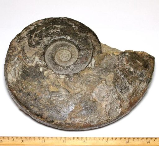 These Moroccan fossils are among the oldest cephalopods. They were abundant during the Paleozoic era some 350 MM years ago and now make up the Atlas Mountain range of central Morocco. There were two Nautiloid forms present in the Moroccan Devonian sea. The Goniatites is an extinct relative of the Ammonites, it possessed an external shell, which is has a spiral form with internal chambers. The Orthoceras was straight shelled cephalopod with the internal chambers. They were related to the modern day chambered nautilus and the squid.