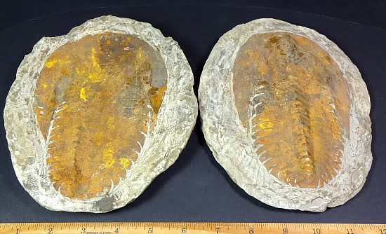Trilobites are hard-shelled, segmented members of Arthropoda and the class Trilobita that existed throughout almost all of the Paleozoic era, flourishing in the earlier part of it and slowly declining in the later part. The most common trilobites were about 2-7 cm (1-3.5 in) in length, but over their long history they ranged in size from 1 mm-72 cm (.04 in-28 in) and exhibited so much variation that they are classified into nine (or possibly ten) orders with more than 15,000 species. The smallest species are presumed to have been part of the free-floating plankton, while the more common, mid-sized species probably walked along the sea floor filtering mud to obtain food, and the larger varieties may have been swimming predators.