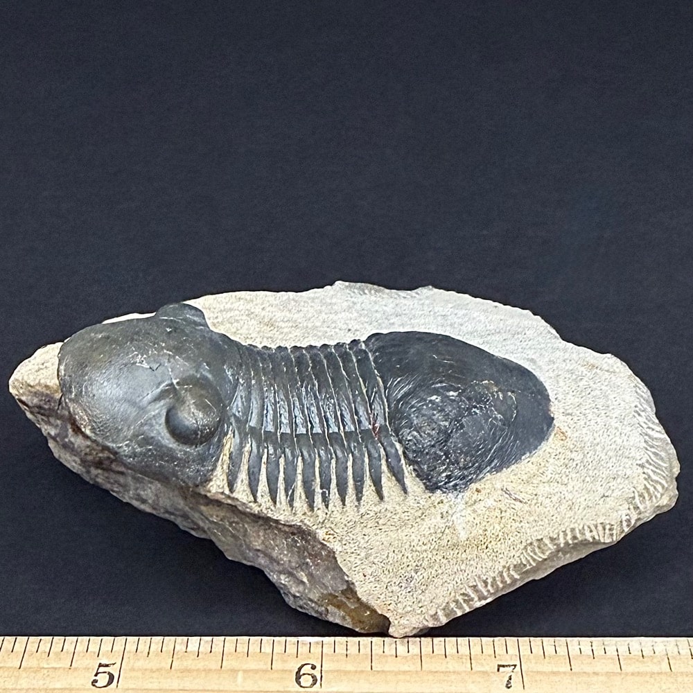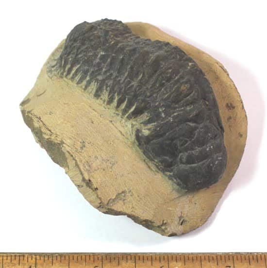 Trilobites are hard-shelled, segmented members of Arthropoda and the class Trilobita that existed throughout almost all of the Paleozoic era, flourishing in the earlier part of it and slowly declining in the later part. The most common trilobites were about 2-7 cm (1-3.5 in) in length, but over their long history they ranged in size from 1 mm-72 cm (.04 in-28 in) and exhibited so much variation that they are classified into nine (or possibly ten) orders with more than 15,000 species. The smallest species are presumed to have been part of the free-floating plankton, while the more common, mid-sized species probably walked along the sea floor filtering mud to obtain food, and the larger varieties may have been swimming predators.