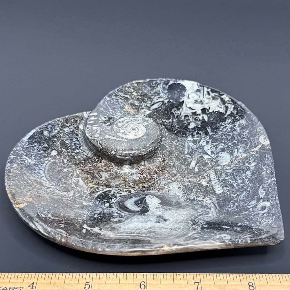 The Geisonoceras Ammonoids are extinct members of the cephalopod group of mollusks. Only a limited number of species have survived to the present day which includes the squid and the chambered nautilus. Like their younger relative Ammonites, they had a multi-chambered shell, and added more chambers as it grew, always living in the outer chamber. They thrived in the Devonian period some 400 to 350 million years ago.