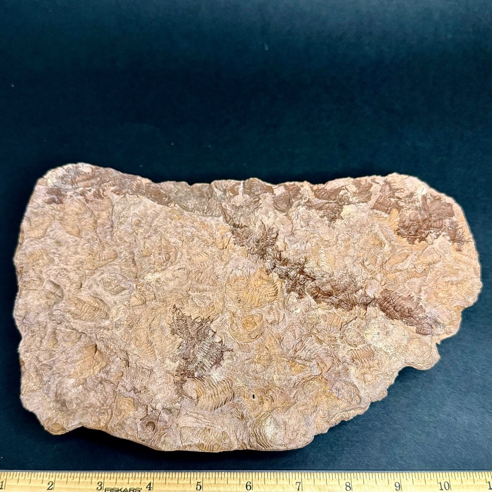 Trilobites are hard-shelled, segmented members of Arthropoda and the class Trilobita that existed throughout almost all of the Paleozoic era, flourishing in the earlier part of it and slowly declining in the later part. The most common trilobites were about 2-7 cm (1-3.5 in) in length, but over their long history they ranged in size from 1 mm-72 cm (.04 in-28 in) and exhibited so much variation that they are classified into nine (or possibly ten) orders with more than 15,000 species. The smallest species are presumed to have been part of the free-floating plankton, while the more common, mid-sized species probably walked along the sea floor filtering mud to obtain food, and the larger varieties may have been swimming predators.
