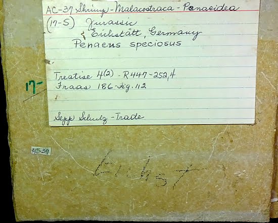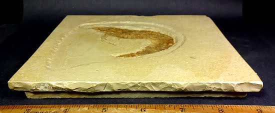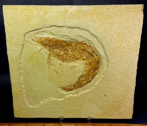 This is an unique and very nice Fossil Shrimp specimen from a private collection. The fossil is from Germany and is from the Jurassic Period. The highly detailed specimen has an exceptional shrimp fossil measuring 3 1/2″ x 1 1/4″ not including the antenna. The light colored Limestone matrix measures 7 1/8″ x 6 1/2″ x 5/8″ thick and has been mounted on an extra base to give it more stability. Very cool!