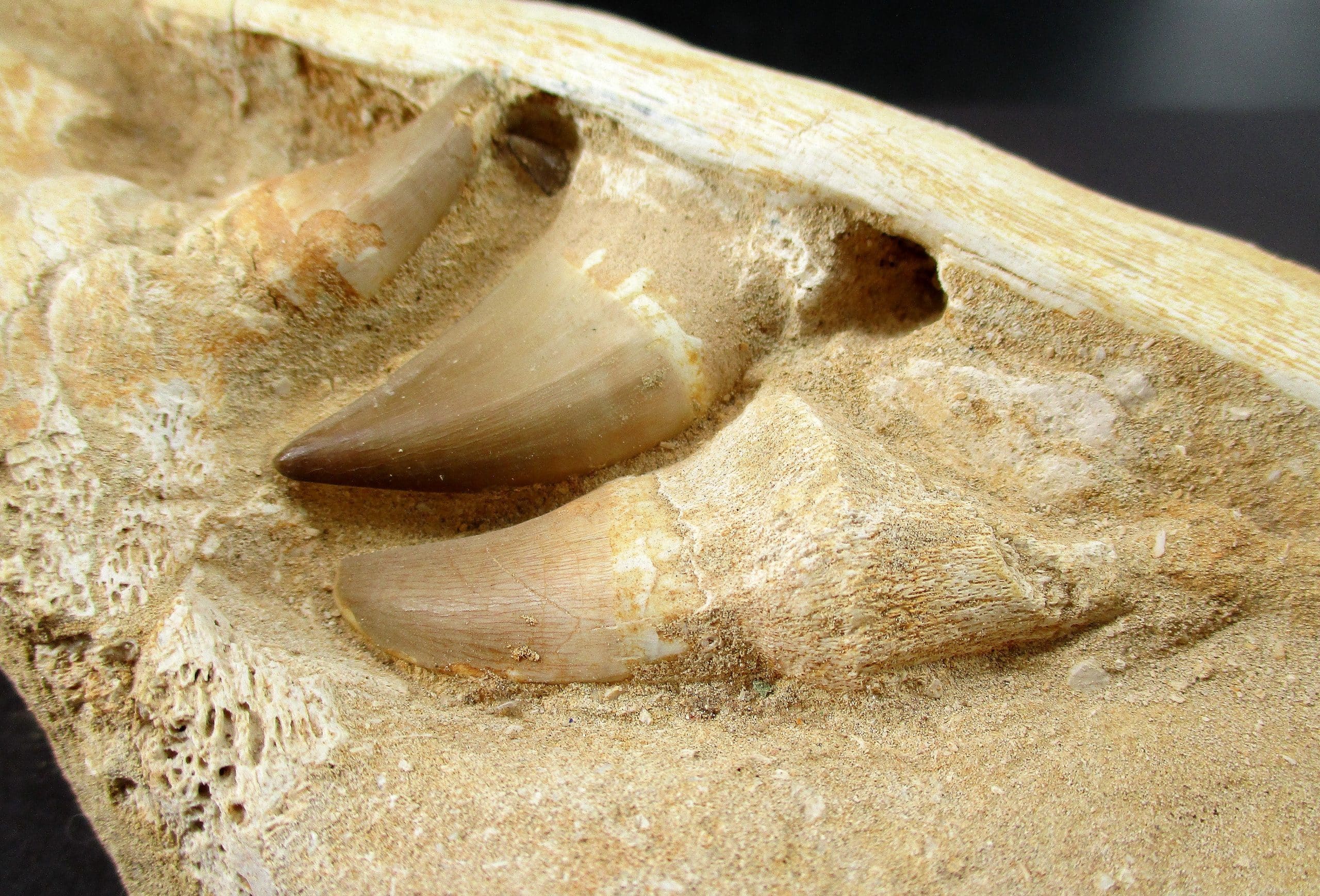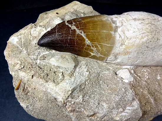 First and most importantly, mosasaurs are not dinosaurs. They are extinct marine reptiles that are believed to be distantly related to monitor lizards such as the Komodo Dragon. More recent evidence, however says they were even more closely related to snakes than monitor lizards. These large reptiles often reached lengths of 30 to 40 feet. Many complete mosasaur specimens have been found in the Niobrara Formation of Western Kansas, and some of the first mosasaur remains were collected more than 130 years ago. As a group, the fossilized remains of mosasaurs had been found all over the world, from Kansas to the Dakotas and Montana. They are also found most other states and in Canada. Overseas, mosasaurs are found in northern Europe, to Turkey, Israel to Africa, and from Brazil to Peru. And they’re found in Australia and New Zealand to the islands off the coast of Antarctica.