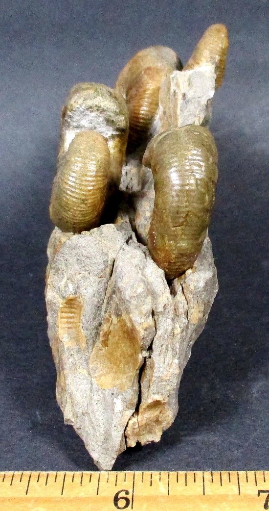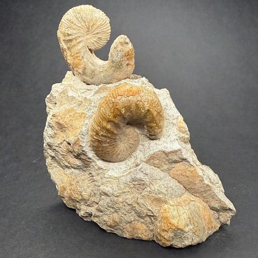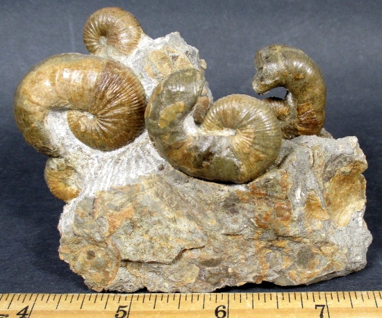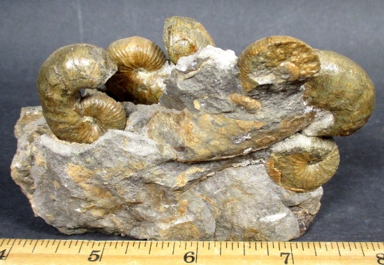 Appearance: Well preserved Ammonite in a matrix with various fragments of other Ammonites.
