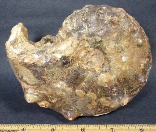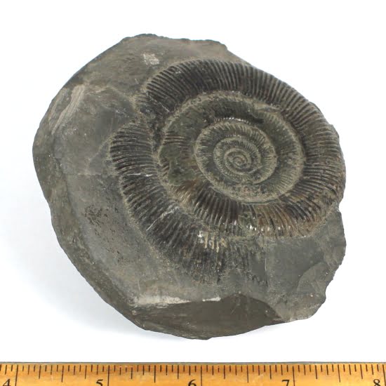 Ammonites are extinct members of the cephalopod group of mollusks. Only a limited number of species have survived to the present day which includes the squid and the chambered nautilus. Ammonites had a multi-chambered shell, and added more chambers as it grew, always living in the outer chamber. They lived in the Cretaceous period some 63 to 130 million years ago
