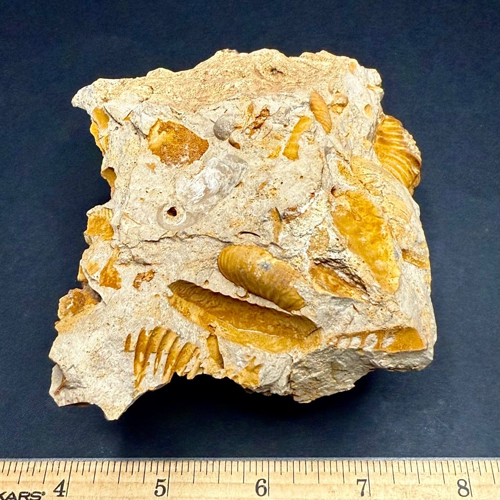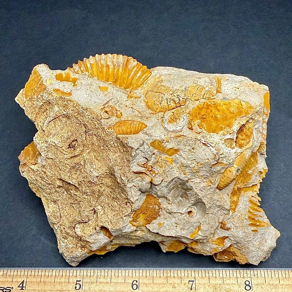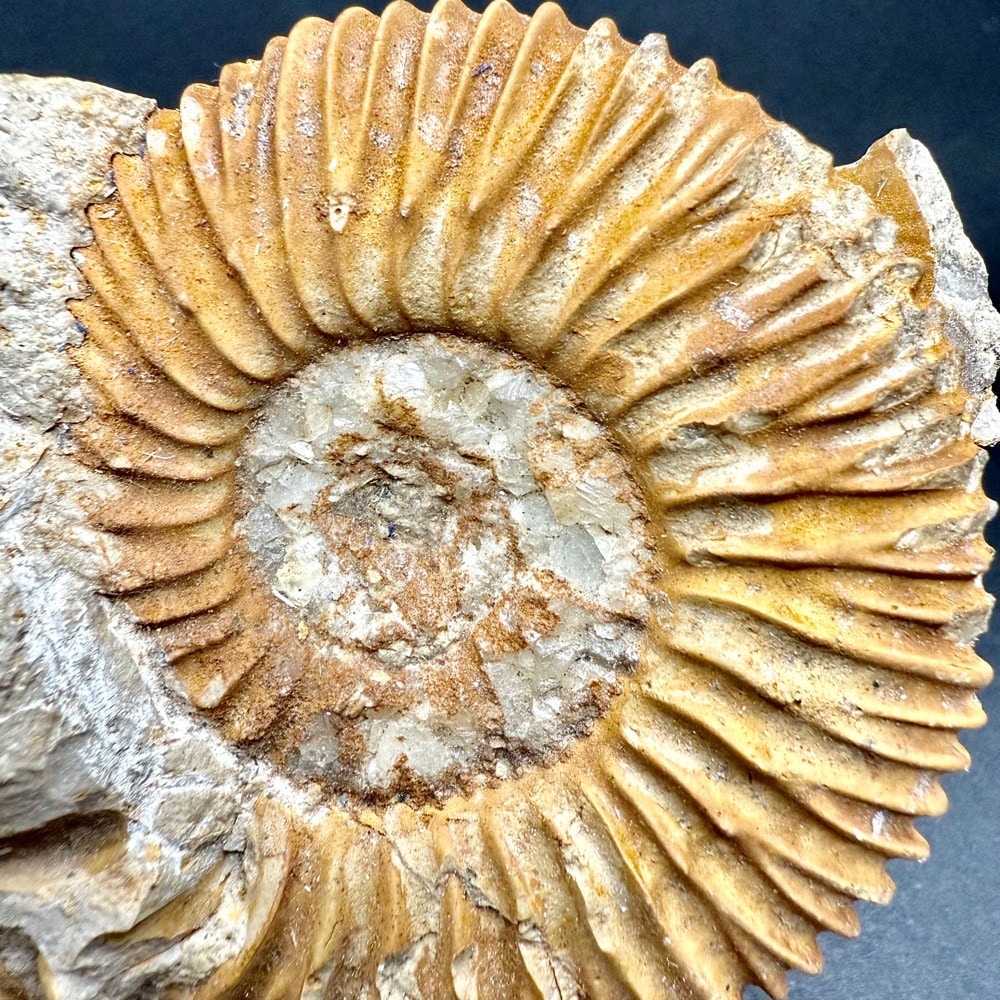 Appearance: Well preserved Ammonite in a matrix with various fragments of other Ammonites.