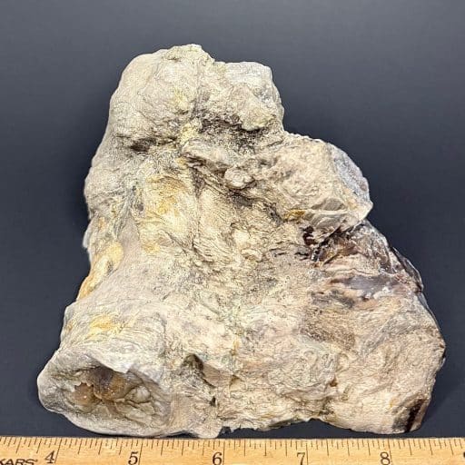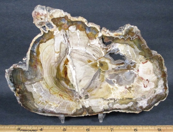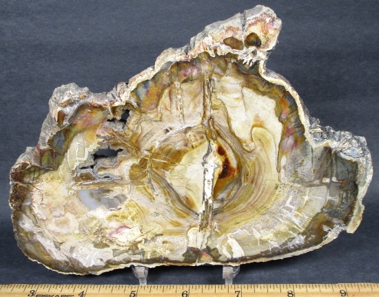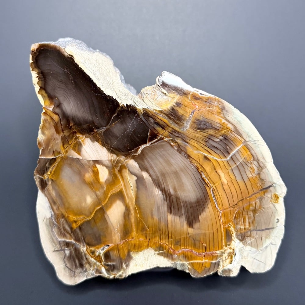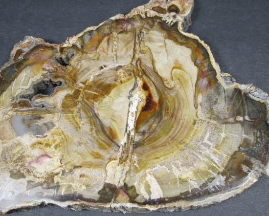 Petrified Wood is a type of a fossil as it consists of fossil wood where all the organic materials have been replaced with minerals while retaining the original structure of the wood. These minerals are most often Silicates such as Quartz. Other minerals, Manganese, Iron and Copper, in the water or mud during the petrification process give Petrified Wood a variety of color ranges: black – Carbon; green/blue – Copper; red/brown/yellow – Iron. Petrified Wood can preserve the original structure of the wood in all its detail all the way down to the microscopic level. Structures such as tree rings and the various tissues are often observed features. Although Petrified Wood can be found worldwide, it is rather rare in larger quantities and at times can be difficult to obtain by the average collector.