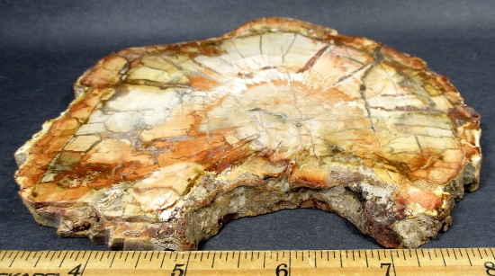 Appearance: It has a nice blend of Earth tone colors with a great design and lots of character. It has been highly polished on both sides leaving the rest in its natural petrified state.