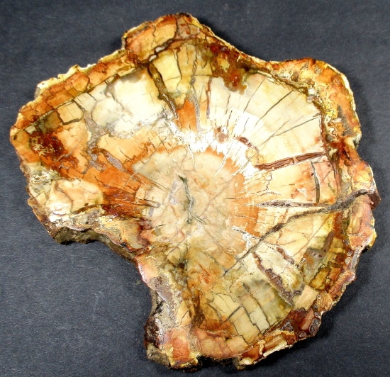Petrified Wood is a type of a fossil as it consists of fossil wood where all the organic materials have been replaced with minerals while retaining the original structure of the wood. These minerals are most often Silicates such as Quartz. Other minerals, Manganese, Iron and Copper, in the water or mud during the petrification process give Petrified Wood a variety of color ranges: black – Carbon; green/blue – Copper; red/brown/yellow – Iron. Petrified Wood can preserve the original structure of the wood in all its detail all the way down to the microscopic level. Structures such as tree rings and the various tissues are often observed features. Although Petrified Wood can be found worldwide, it is rather rare in larger quantities and at times can be difficult to obtain by the average collector.