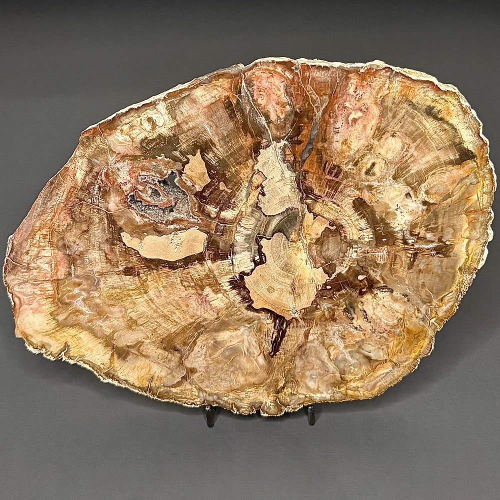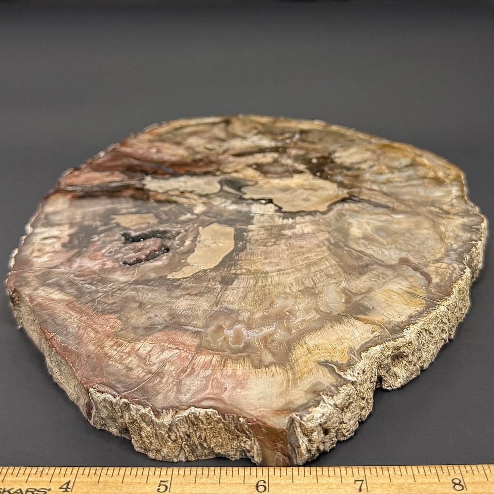 Appearance: Polished on one side that brings out the fabulous colors and design while leaving the back and outer bark in its natural rough state.