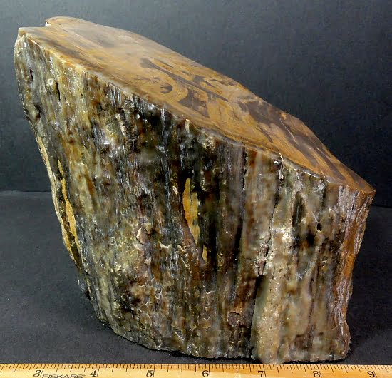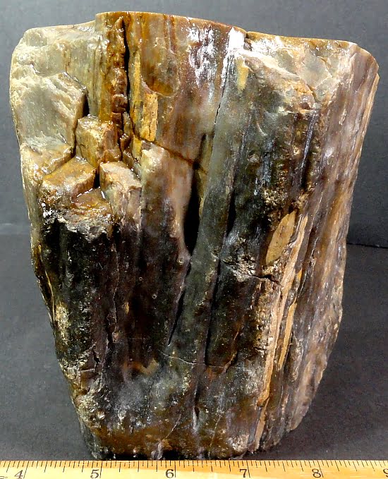 Petrified Wood is a type of a fossil as it consists of fossil wood where all the organic materials have been replaced with minerals while retaining the original structure of the wood.  These minerals are most often Silicates such as Quartz.  Other minerals, Manganese, Iron and Copper, in the water or mud during the petrification process give Petrified Wood a variety of color ranges: black – Carbon; green/blue – Copper; red/brown/yellow – Iron.  Petrified Wood can preserve the original structure of the wood in all its detail all the way down to the microscopic level.  Structures such as tree rings and the various tissues are often observed features.  Although Petrified Wood can be found worldwide, it is rather rare in larger quantities and at times can be difficult to obtain by the average collector.