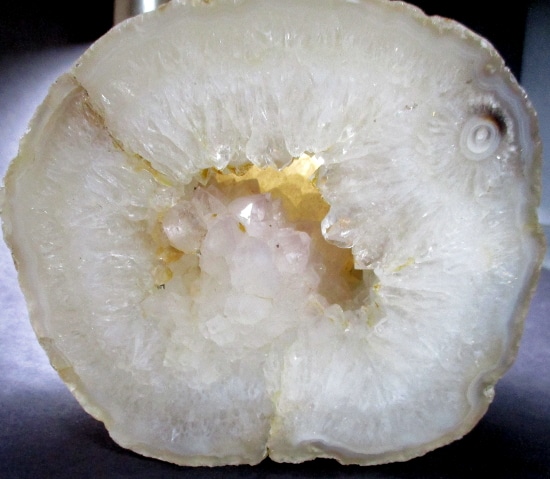 Here is a nice specimen of a petrified wood limb from Wiggins Fork, Wyoming. This exceptional limb has great mostly white colors and fabulous design. It has a good polish on the one end highlighting the unique aspects of this piece while leaving the rest in its natural state. It has lots of neat crystal and surprising banding. It measures 5″ x 4″ x 4 3/4″ tall and is from an old private collection.
